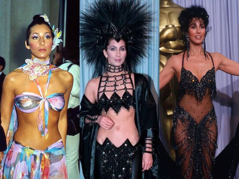 En 1974, la estrella se encontraba promocionando su álbum homónimo y apostó por un conjunto floral de colores pasteles. Luego en 1986 se atrevió a usar un deslumbrante atuendo negro de llamativas plumas, pero uno de sus trajes más recordados fue el de 1988. Este último año, la actriz expandió su carrera y se posicionó con el premio a la Mejor Actriz por "Moonstruck". En esa oportunidad, deslumbró al lucir un vestido de lentejuelas con el abdomen al descubierto, que acompañó con un tocado de plumas.