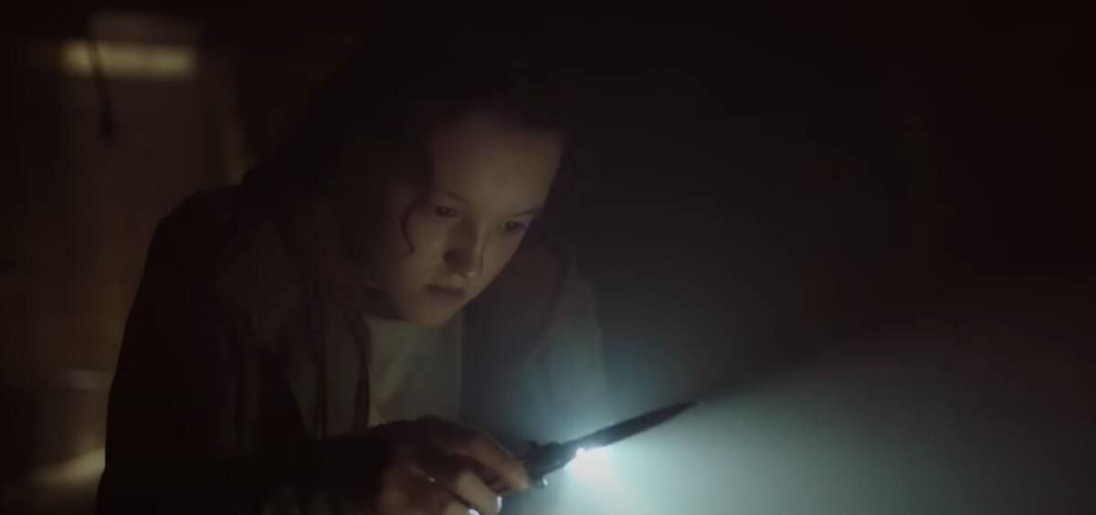 En este adelanto vemos a Bella Ramsey con el mismo peinado de Ellie, y la misma camiseta manga larga color rojo, acompañada además junto a su característica mochila.