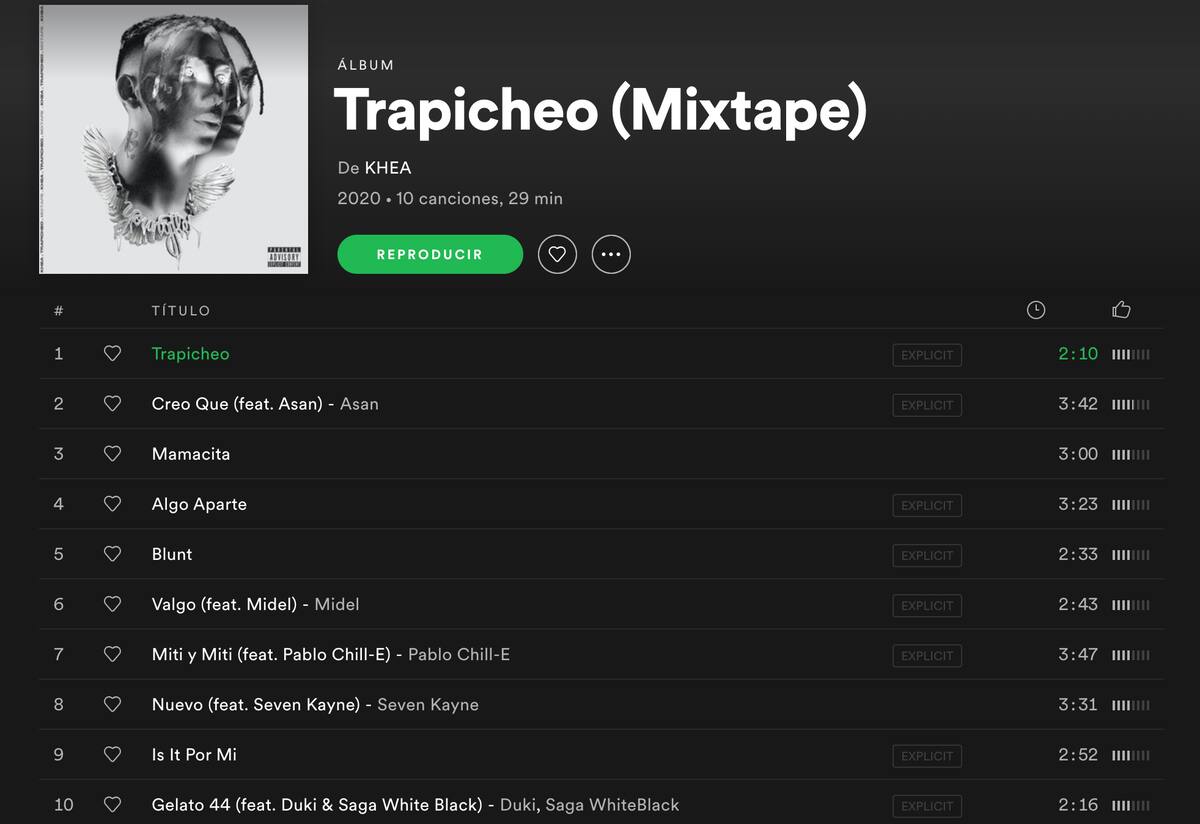 El cantante argentino KHEA anunció a través de sus redes sociales el lanzamiento de su disco debut: "Trapicheo Mixtape", que tendrá la colaboración del chileno Pablo Chill-E, además de otros artistas latinoamericanos.