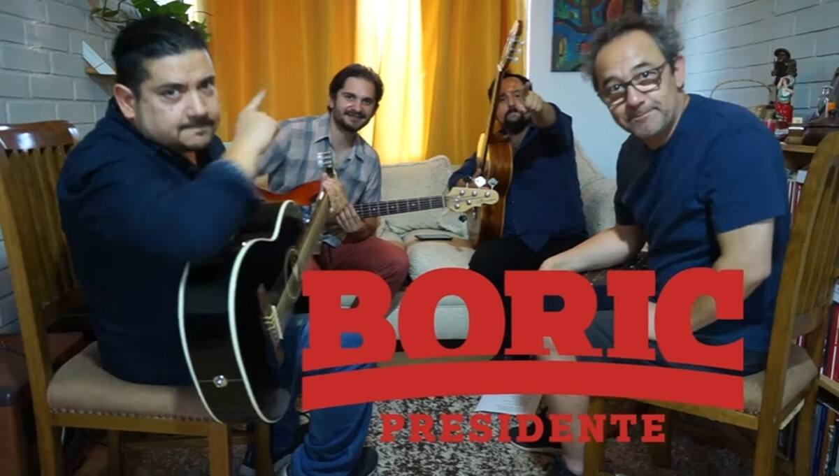 Así, el actor se unió al Horacio Hernández en guitarra, Diego Cabello en el mismo instrumento y Gonzalo Gómez en el bajo, donde los cuatro adaptaron la letra para manifestar su preferencia por el abanderado de Apruebo Dignidad.