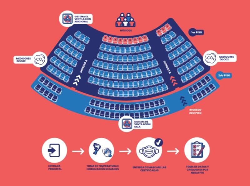 Para esto, deberá cumplirse con una serie de normas y etapas, entre ellas la toma de PCR previo al concierto, contar con el esquema de vacunación completo y el pase de movilidad activo, uso de mascarillas en todo momento y sin excepción, higienización de espacios y manos, medición de CO2 y ventilación permanente del lugar, además de la firma de consentimiento informado por parte de los asistentes.