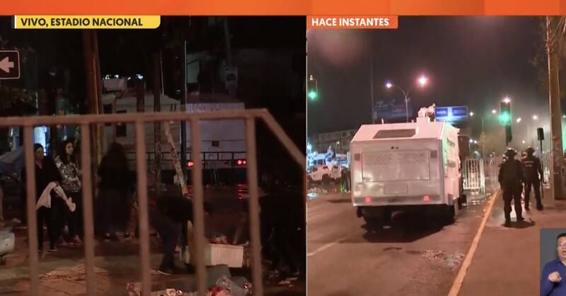 A raíz del desorden que se generó en el lugar, personal de Carabineros actuó con carros lanzaaguas, impidiendo que el grupo de personas, quienes no contaban con entradas, ingresaran al Estadio Nacional.