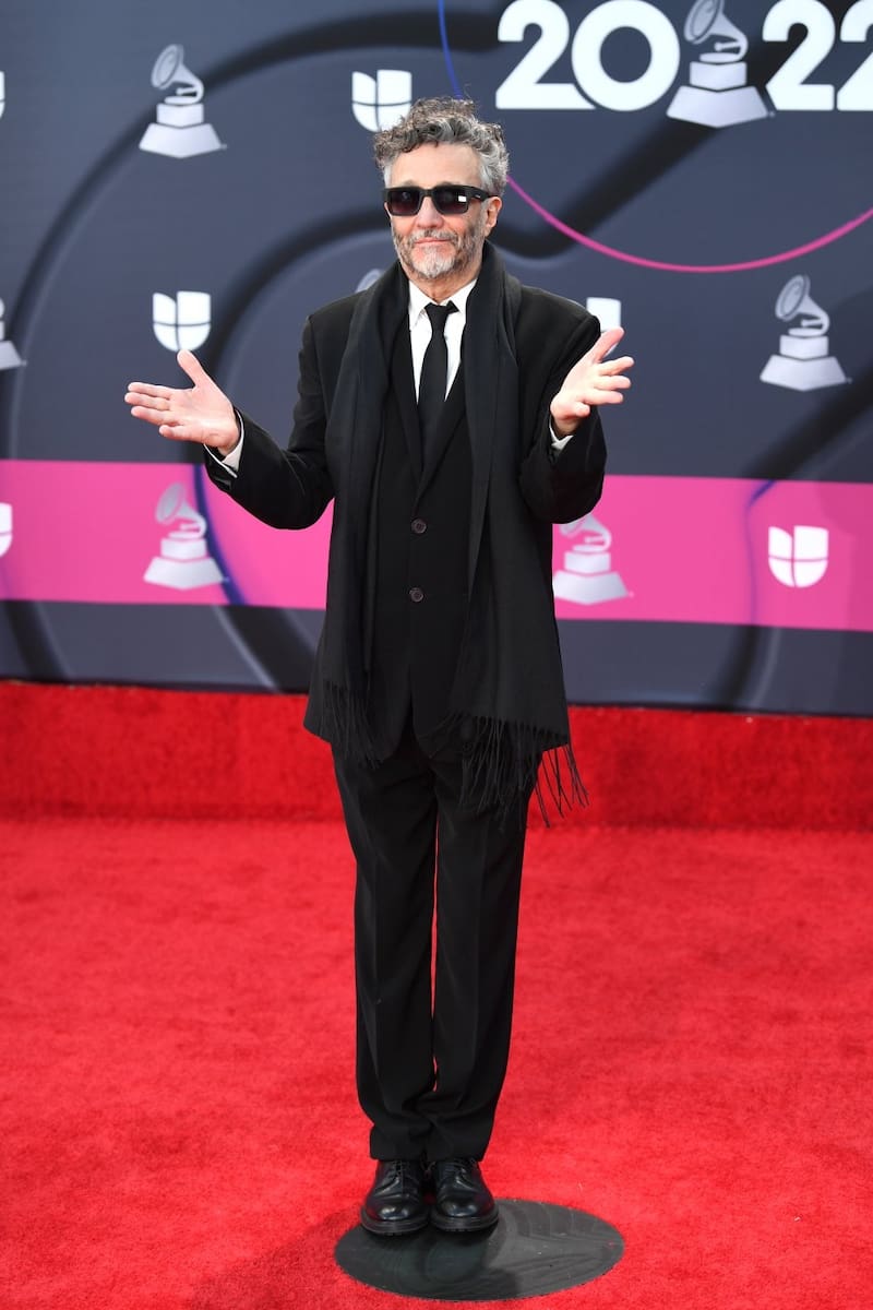 Todo un clásico, Fito Páez que no arriesgó en su look, se presentó con un traje negro con camisa blanca y corbata también negra. Además, lo complementó con lentes de sol del mismo tono.