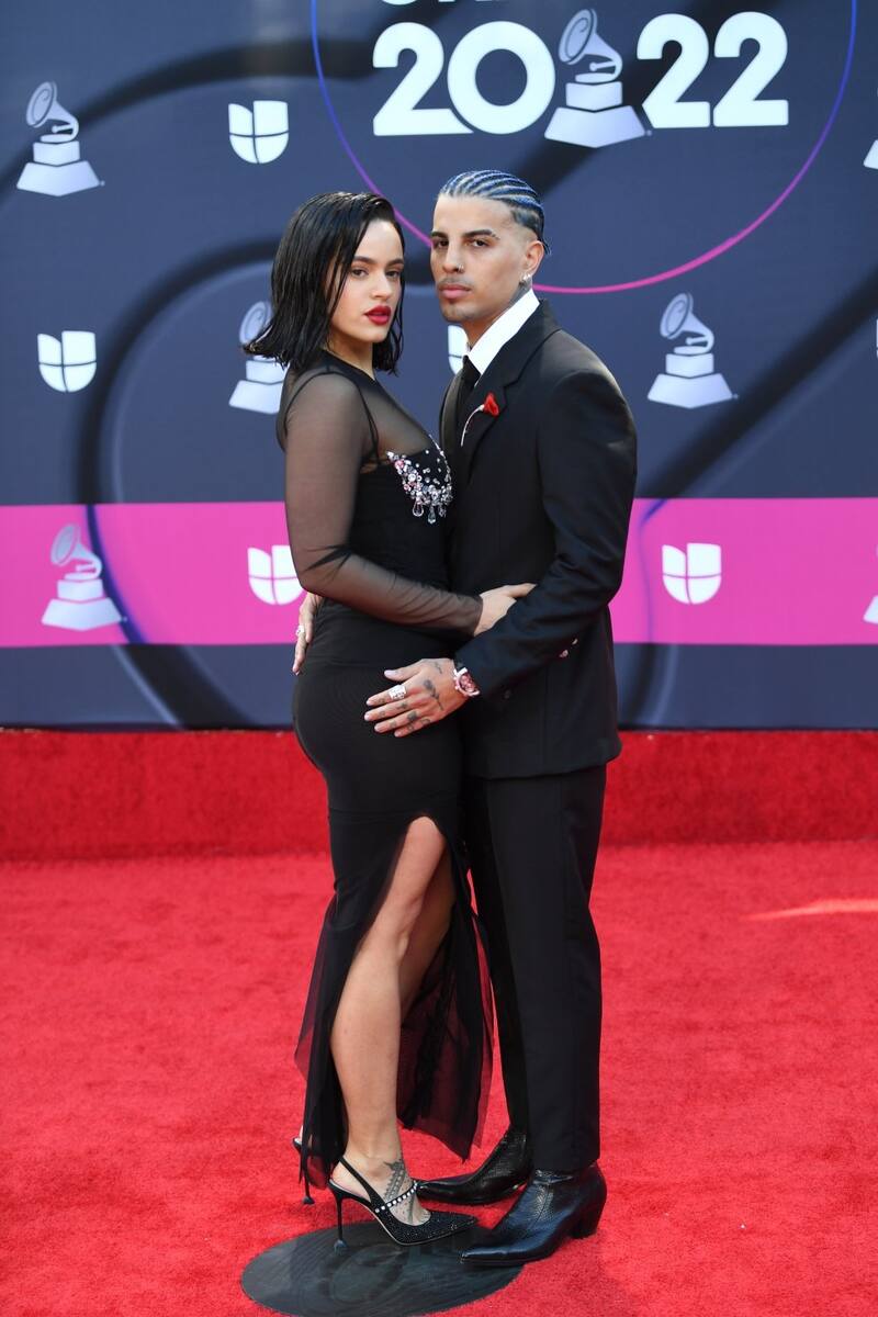 La pareja del momento impactó en la alfombra roja. Rosalía se lució con un espectacular vestido negro con apliques en escote de Miau Miau y lo acompañó con un peinado wet e impresionantes labios rojos a juego con la flor de la solapa de su pareja, ya que ambos han acudido a la alfombra roja debidamente combinados.