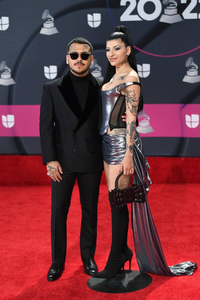 Esta nueva pareja característica por sus tatuajes se destacó en la alfombra roja, ya que ella lució un llamativo vestido con cola y el cantante combinó junto a ella con un look totalmente negro con lentes de sol.
