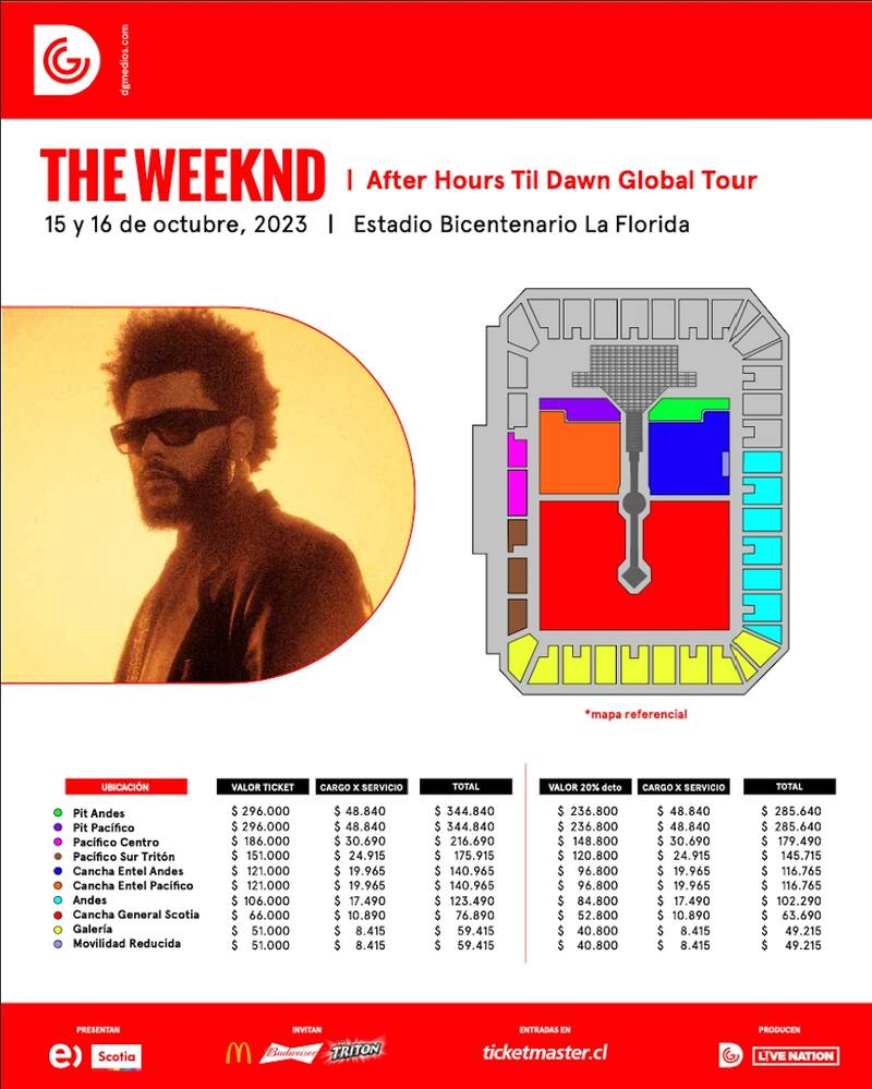 El segundo concierto de The Weeknd en Chile será el 16 de octubre, en el Estadio Bicentenario La Florida.