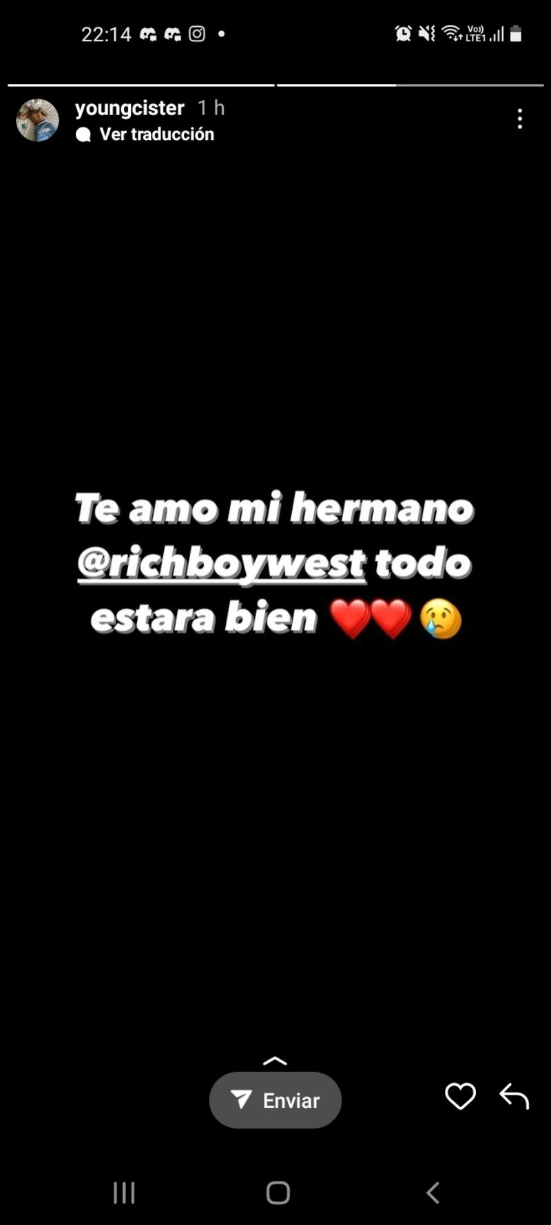 "Te amo mi hermano, todo saldrá bien", escribió Young Cister en su cuenta de Instagram, enviándole apoyo a su amigo.