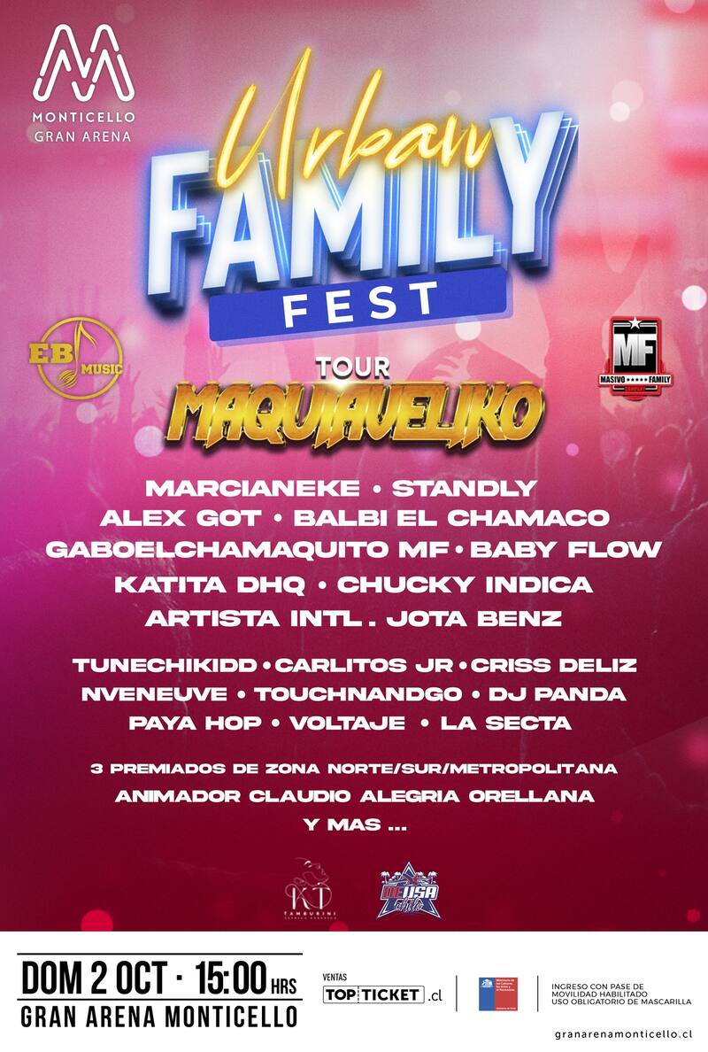 El evento "Urban Family Fest" se realizará en el Gran Arena Monticello, el próximo domingo 2 de octubre, desde las 15:00 horas.