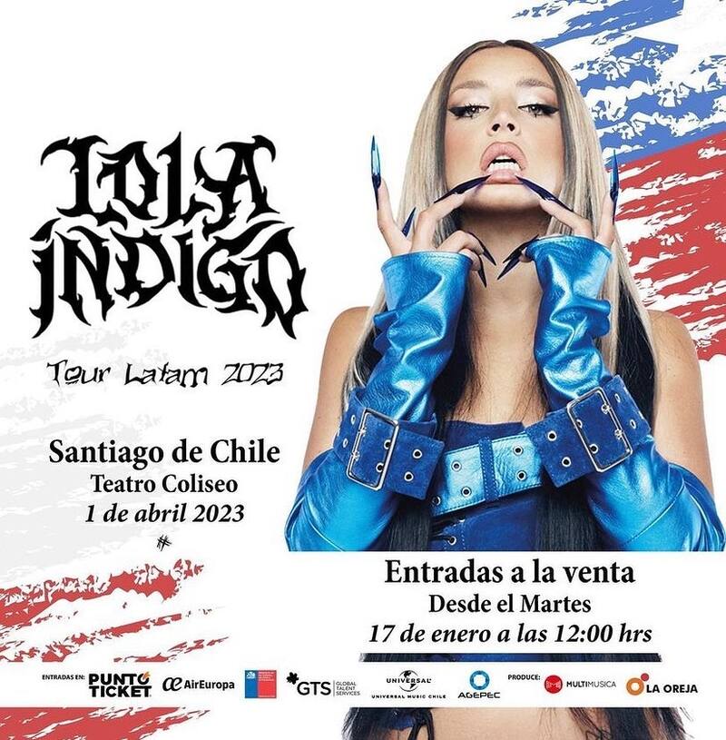 La cantante española Lola Índigo confirmó que realizará un concierto en Chile, el cual formará parte de su gira latinoamericana 2023.