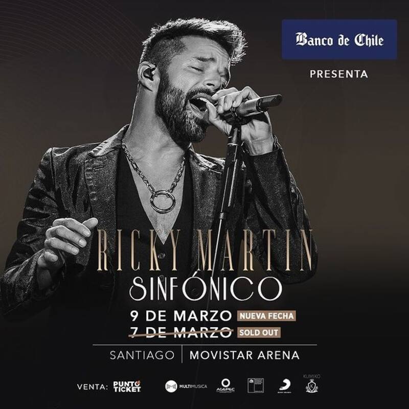 Hace unos días, se anunció que Ricky Martin llegaría a Santiago con su gira de orquesta sinfónica, un show que ya presentó el pasado mes de diciembre en Viña del Mar. Sin embargo, el espectáculo que anunció para la capital, específicamente, para este próximo 7 de marzo en el Movistar Arena, ya agotó todas sus entradas.