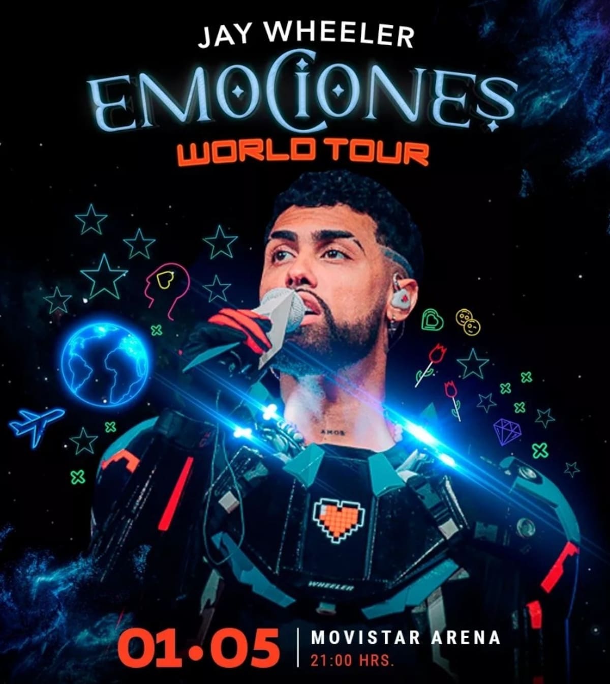 Jay Wheeler anunció que realizará un concierto en solitario en Chile en el marco de su gira mundial "Emociones World Tour 2023", la cual empezará el próximo mes, y con la que también recorrerá diferentes países de Latinoamérica y ciudades de Estados Unidos. El artista urbano llega a Santiago tras cuatro exitosas presentaciones en el Coliseo de Puerto Rico José Miguel Agrelot, conocido como el "Choliseo".
