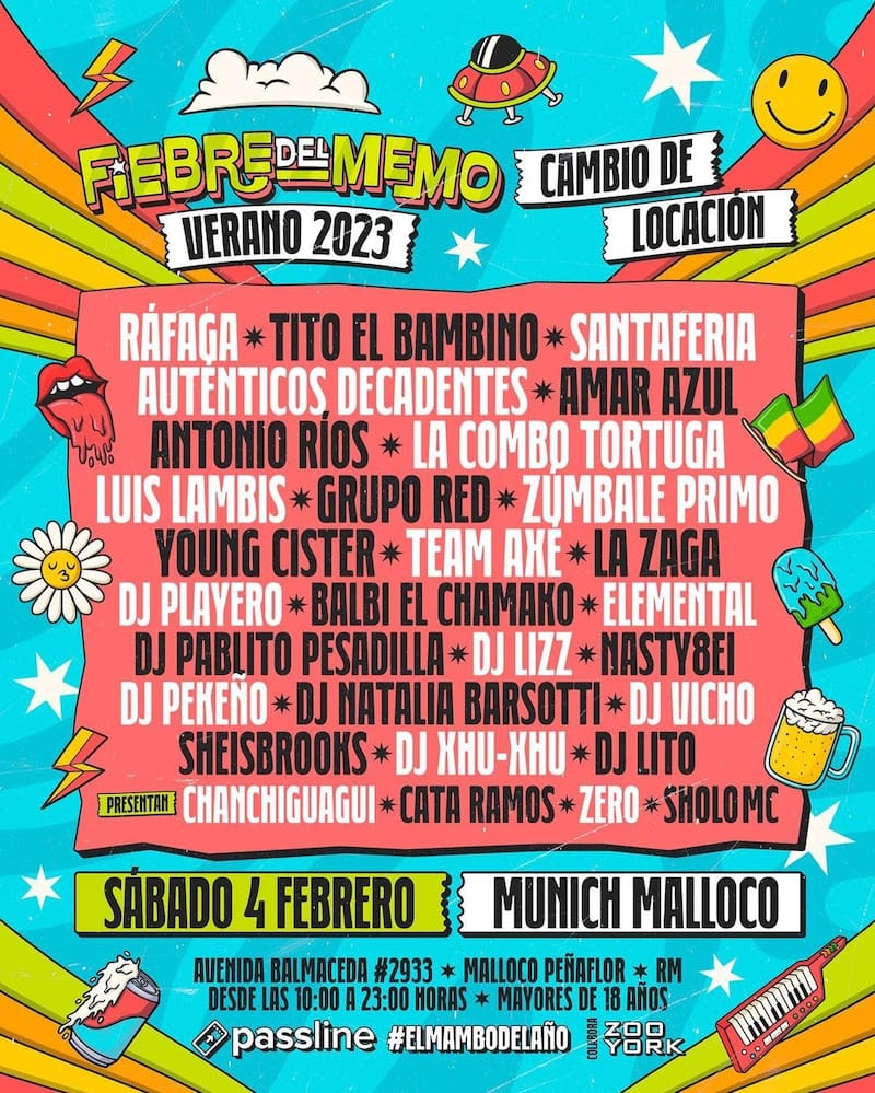 En la Fiebre del Memo, habrá dos escenarios y, en estos, se presentarán artistas como Ráfaga, Tito "El Bambino", Santaferia, Los Auténticos Decadentes, Amar Azul, La Combo Tortuga, Young Cister, Team Axé, Pablito Pesadilla, entre otros destacados cantantes.
