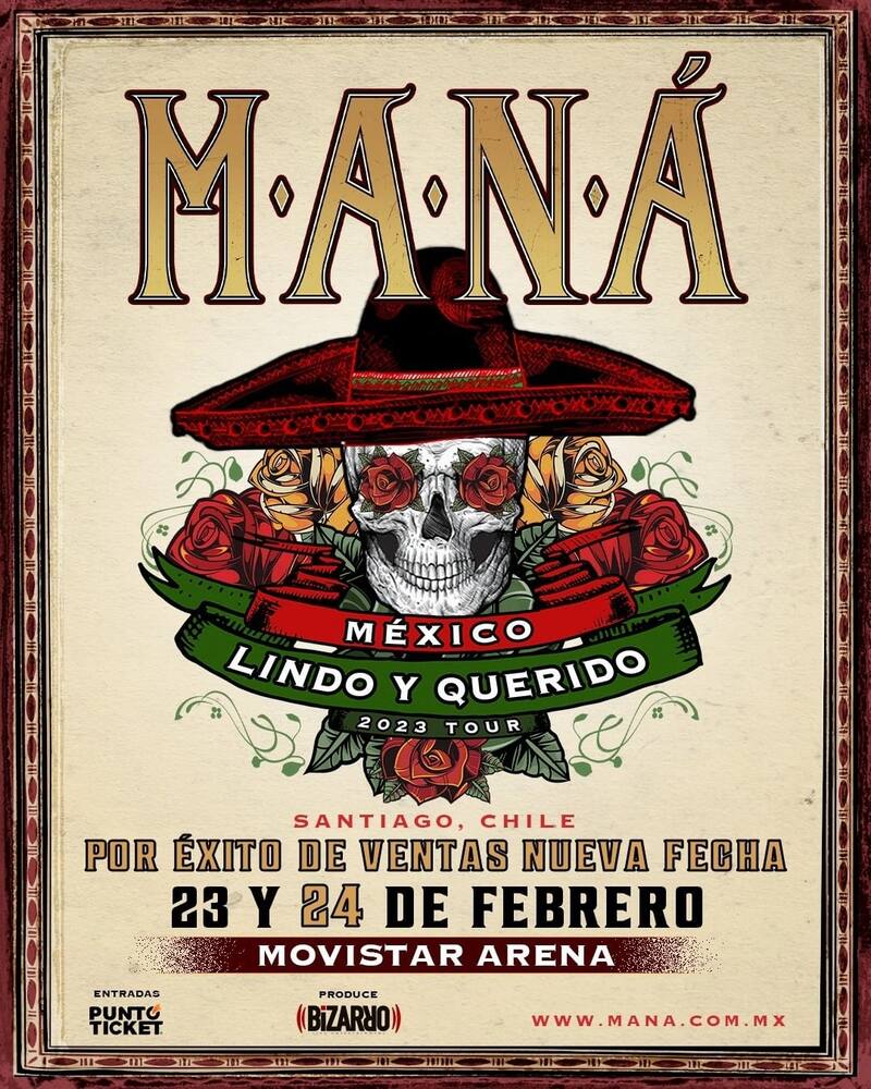 Maná no solo anunció que ya no será parte del Festival de Viña 2023, sino que también revelaron que tampoco realizarán sus dos conciertos programados en Santiago. La agrupación mexicana, se presentaría los días 23 y 24 de febrero en el Movistar Arena.