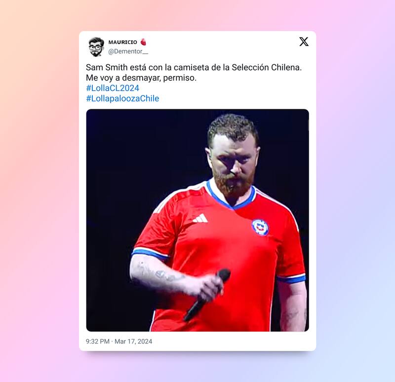 No obstante, lejos el que más sorprendió fue cuando Sam Smith salió al público con la polera de la Selección Chilena de Fútbol, un momento icónico que será recordado para siempre en la historia del Lollapalooza en nuestro país.