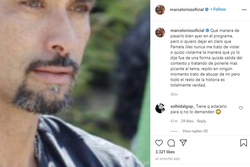 "Si quiero dejar en claro que Pamela Jiles nunca me trató de violar o quiso violarme la manera que yo lo dije fue de una forma quizás salida del contexto y tratando de ponerle mas picante al tema, repito en ningún momento trato de abusar de mí pero todo el resto de la historia es totalmente verdad", sentenció.