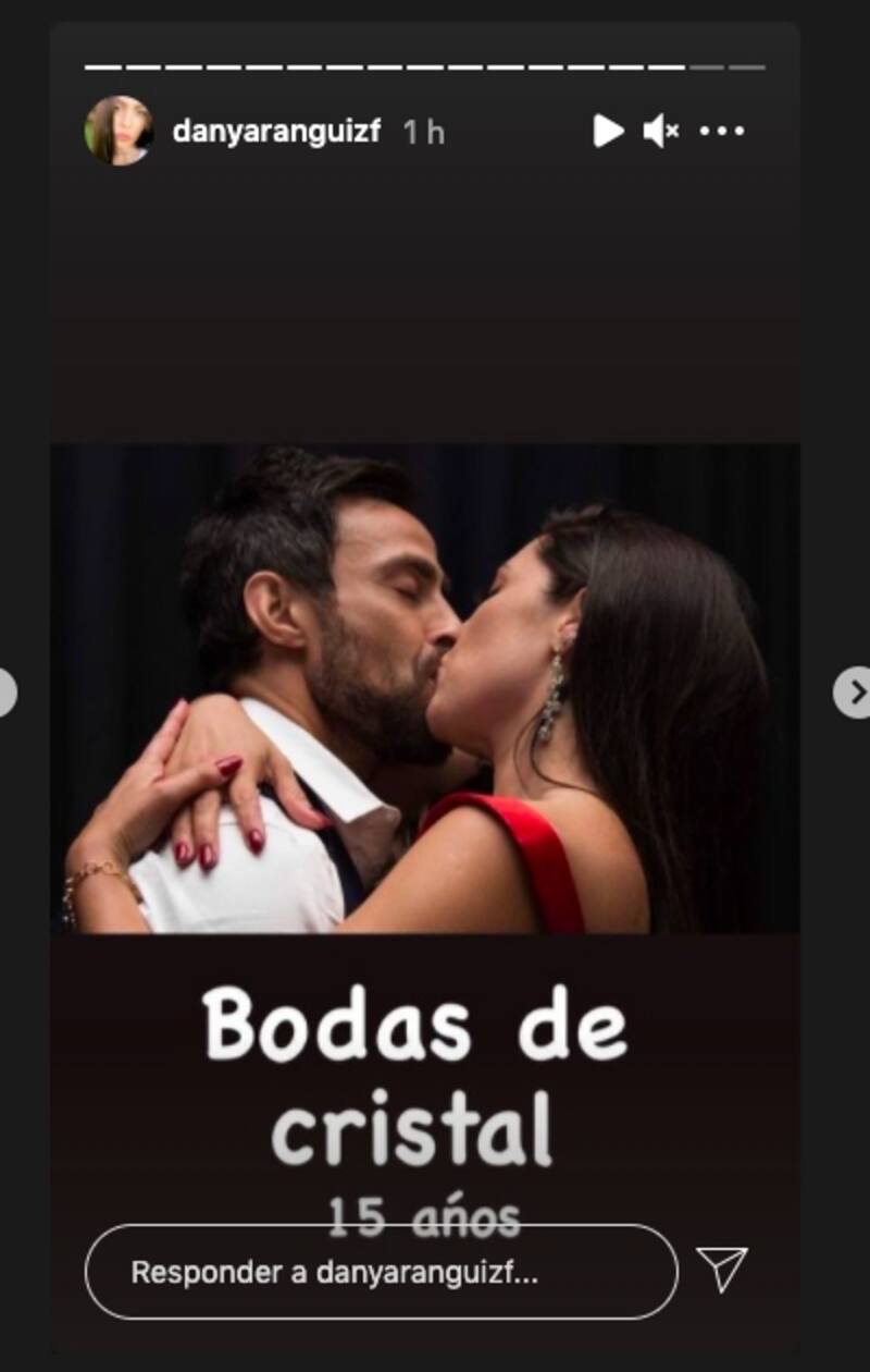 En una segunda fotografía de ambos besándose, Aránguiz escribió: "Bodas de Cristal", haciendo referencia a los 15 años de relación que han mantenido.
