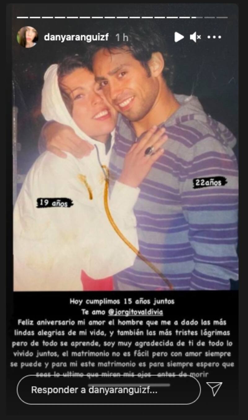 Daniela Aránguiz celebró en Instagram los 15 años que lleva junto a su esposo Jorge Valdivia. La ex chica "Mekano" no pasó por alto este día y lo conmemoró dejando un lindo mensaje para el futbolista.