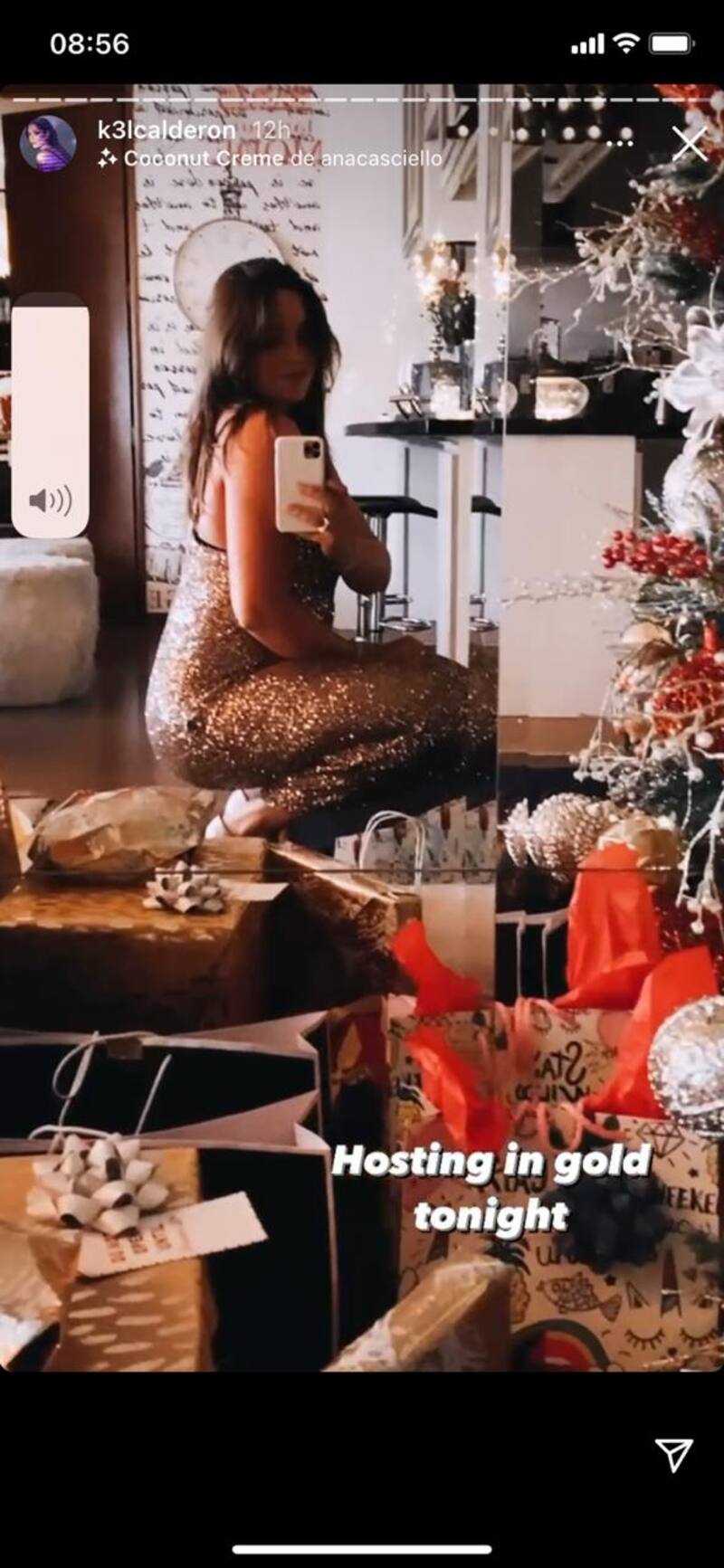 La última foto que subió Kel a sus Stories fue una de su look navideño, donde viste un traje dorado, con el mensaje: "Hosting in gold tonight (hospedaje en oro esta noche)". No publicó ninguna foto de la cena familiar ni de quienes participaron de ella.