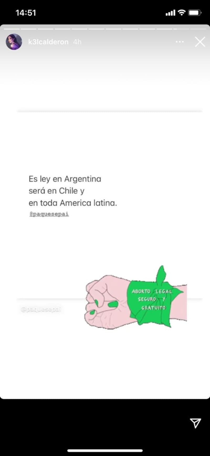 Kel Calderón también reaccionó sobre la aprobación del proyecto en su cuenta de Instagram. En sus historias posteó una fotografía con el texto: "Es ley en Argentina, será en Chile y en toda América Latina".