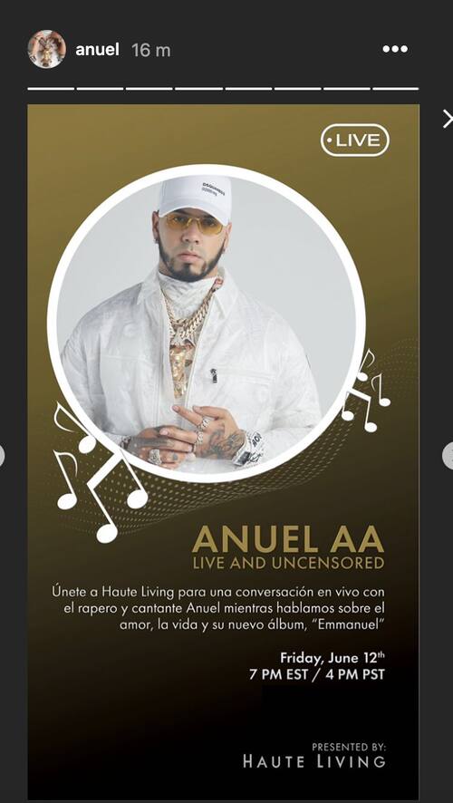 Tras lo último, el artista mostró su lado más solidario e informó que todo el dinero recaudado con el álbum "Emmanuel" será entregado a una fundación. La idea de su obra solidaria es ayudar a personas contagiadas de Covid, aunque aún no informa a quién entregará las ganancias. En la mañana de ayer Anuel anunció a través de redes sociales que haría un Instagram Live para hablar sobre sus proyectos. Sin embargo, en la noche pidió disculpas a sus seguidores por tener que posponer el en vivo para hoy.
