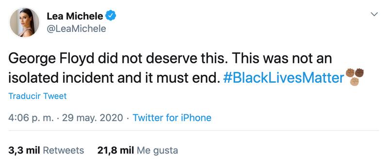 Son muchos los famosos que a través de redes sociales se han pronunciado sobre la reciente muerte del ciudadano afroamericano George Floyd a manos de un policía en Mineápolis, Estados Unidos. Lea Michele, la protagonista de la conocida serie "Glee", publicó un tuit en contra de actitudes racistas. Sin embargo, una de sus antiguas compañeras de set ha respondido para recordarle el "infierno" que le hizo pasar durante el tiempo en que compartieron grabaciones del programa.