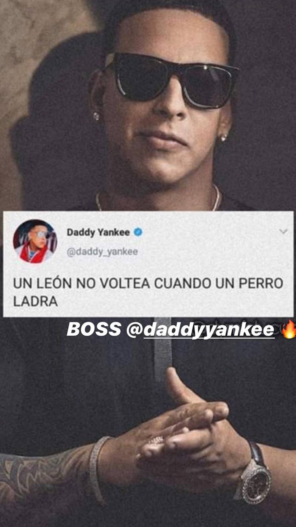 La cantante publicó una imagen de Daddy Yankee, con una frase dicha por el mismo reggaetonero. "Un león no voltea cuando un perro ladra", fueron las palabras que el puertorriqueño dijo en algún momento de su vida, y la colombiana quiso homenajear.