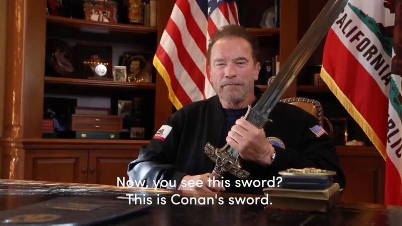 Y no se quedó allí, sino que también mostró una vieja reliquia de uno de sus más conocidos roles en el cine. "Esta es la espada de 'Conan el Bárbaro', y hay una verdad sobre esta arma, mientras más la temperes y la pongas al fuego y golpees más fuerte se hará, y la Democracia es tan fuerte como acero de esta hoja".