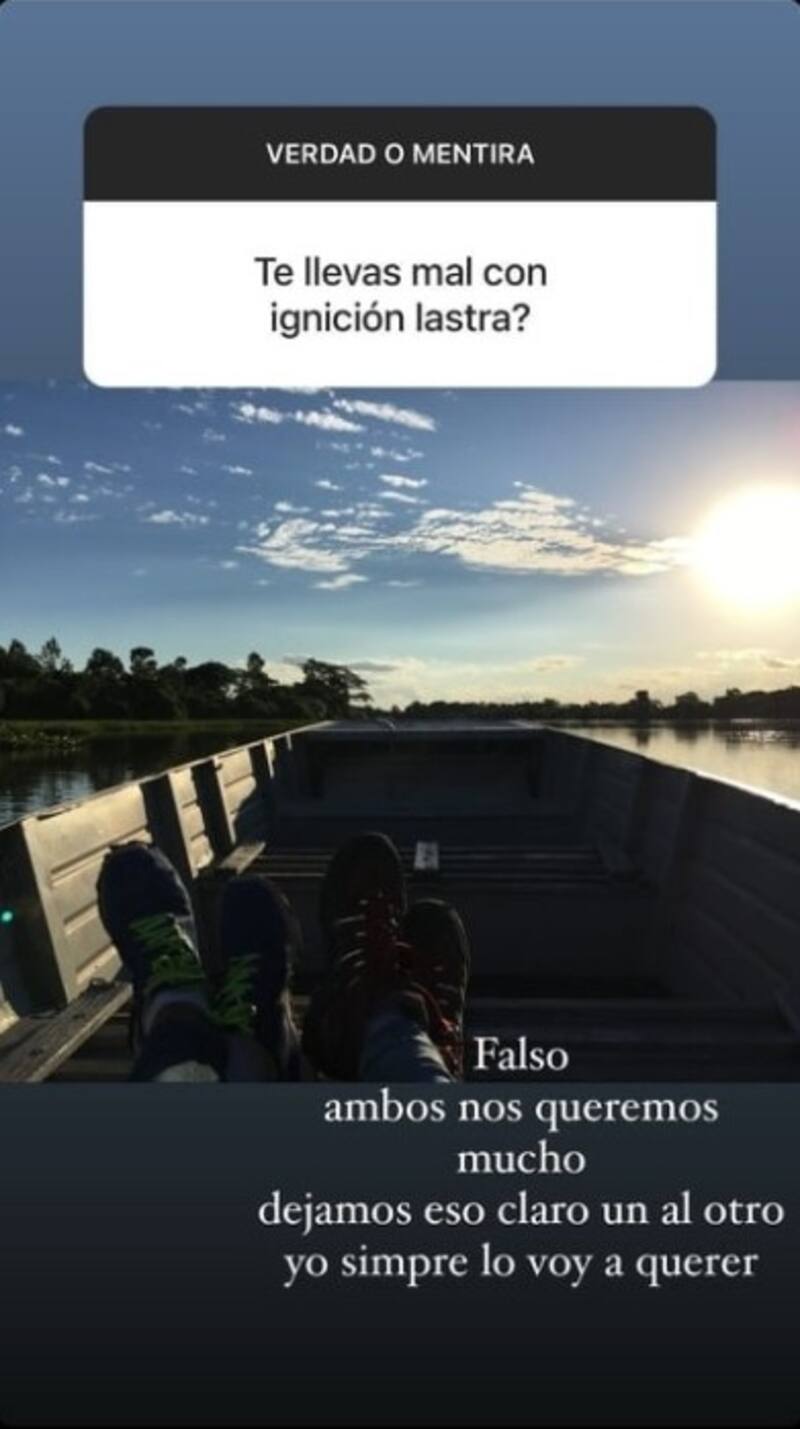 "Te llevas mal con Ignacio Lastra", fue el cuestionamiento de uno de sus seguidores a lo que Julia Fernandes explicó que "ambos nos queremos mucho, dejamos eso claro el uno al otro. Yo siempre lo voy a querer".