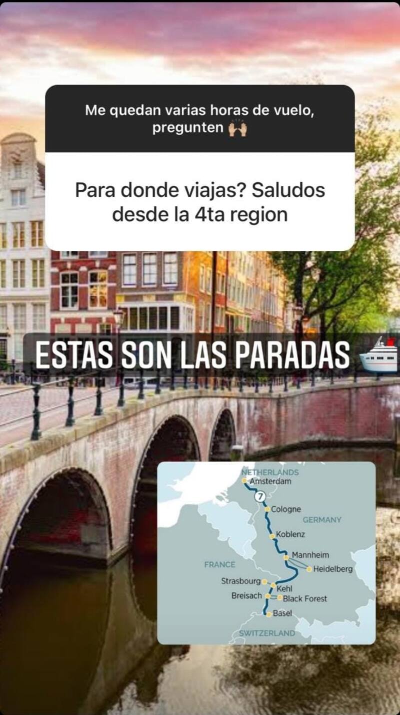 Así lo expresó el hijo de Raquel Argandoña en su cuenta de Instagram, donde contó brevemente cuales serán sus paradas cuando llegue al viejo continente.