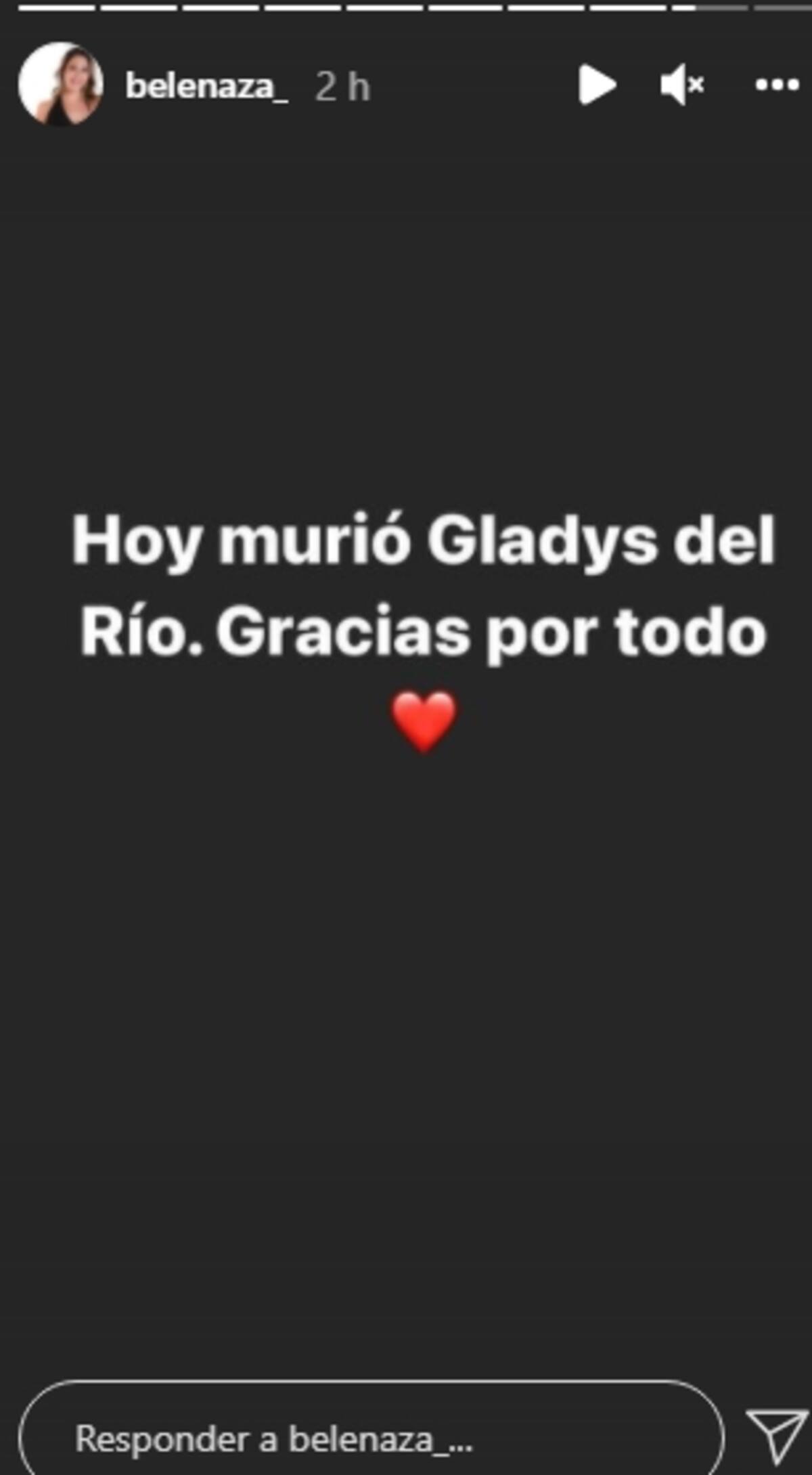 Fue su amigo y colega, Eduardo Ravani, quien entregó la noticia en redes sociales, señalando "La escena nacional se viste de luto, se va una compañera de vida. Descansa en paz Gladys del Río", lo cual rápidamente despertó generó reacciones de la escena artística.