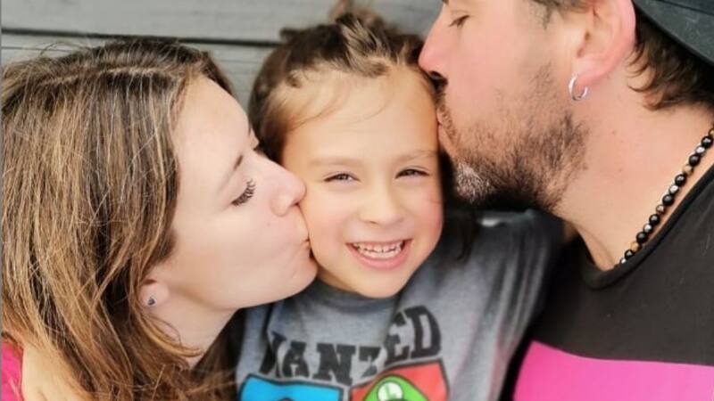 En las otras postales se puede ver al hijo de la pareja, Mariano de siete años, quien a diferencia de sus progenitores, escogió un disfraz inspirado en una película de terror.