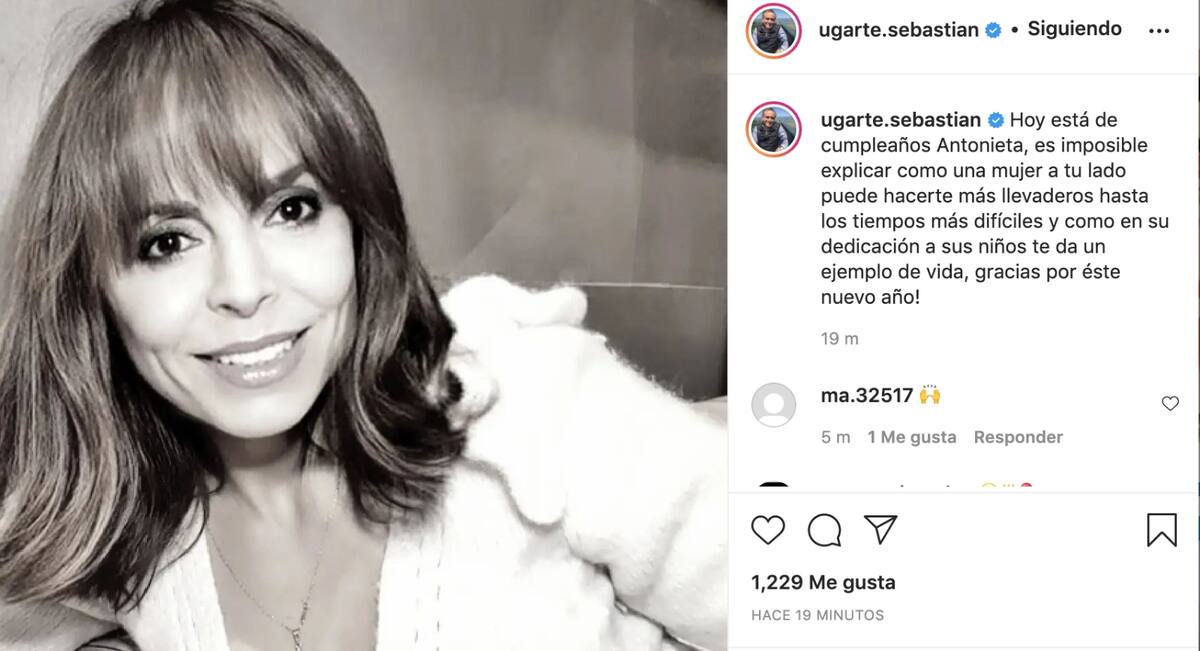 Junto a la fotografía, el doctor Ugarte le escribió: "Hoy está de cumpleaños Antonieta. Es imposible explicar cómo una mujer a tu lado puede hacerte más llevaderos hasta los tiempos más difíciles y cómo en su dedicación a sus niños te da un ejemplo de vida".
