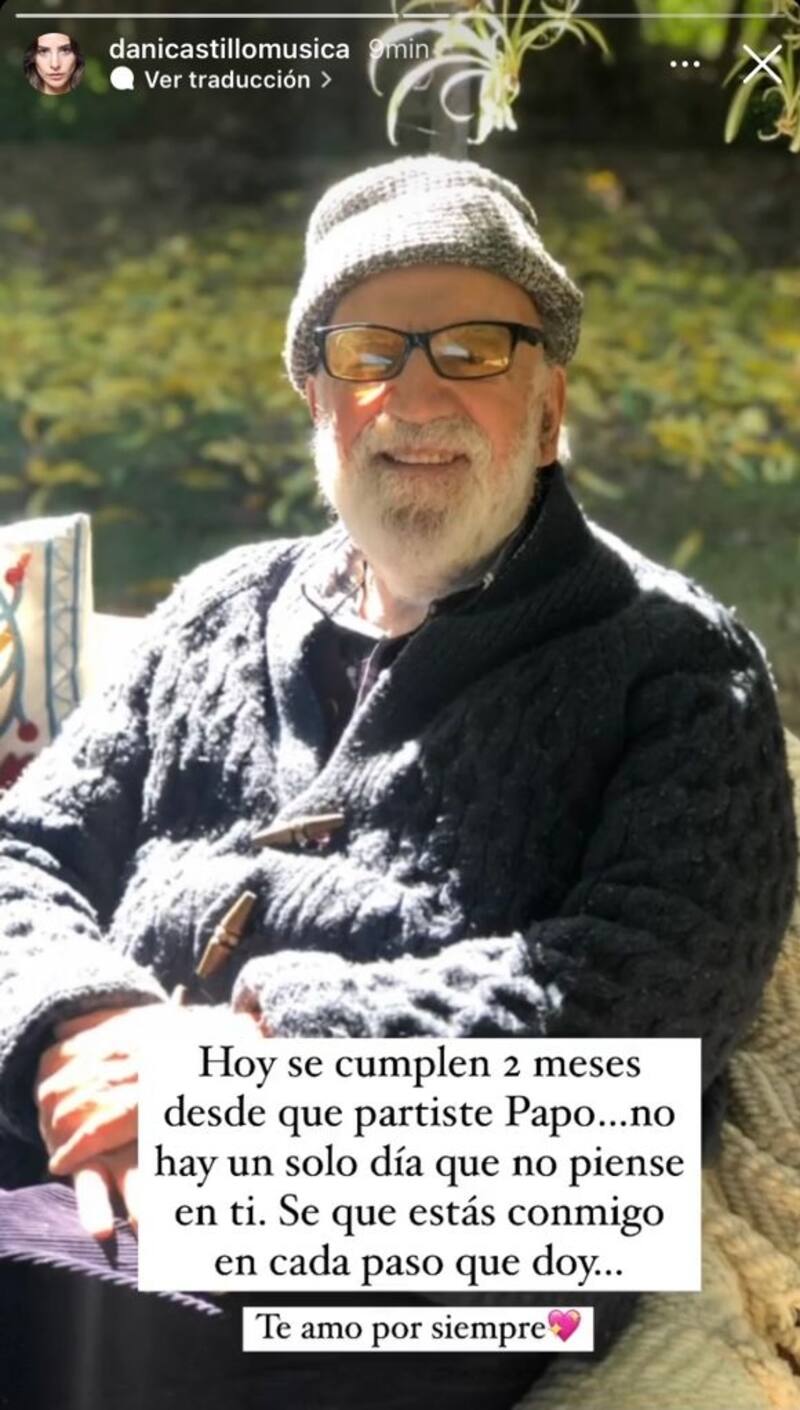 "Hoy se cumplen dos meses desde que partiste, Papo... No hay un solo día que no piense en ti", partió escribiendo Daniela Castillo junto a la publicación que musicalizó con la canción "Yo te extrañaré" de Tercer Cielo.