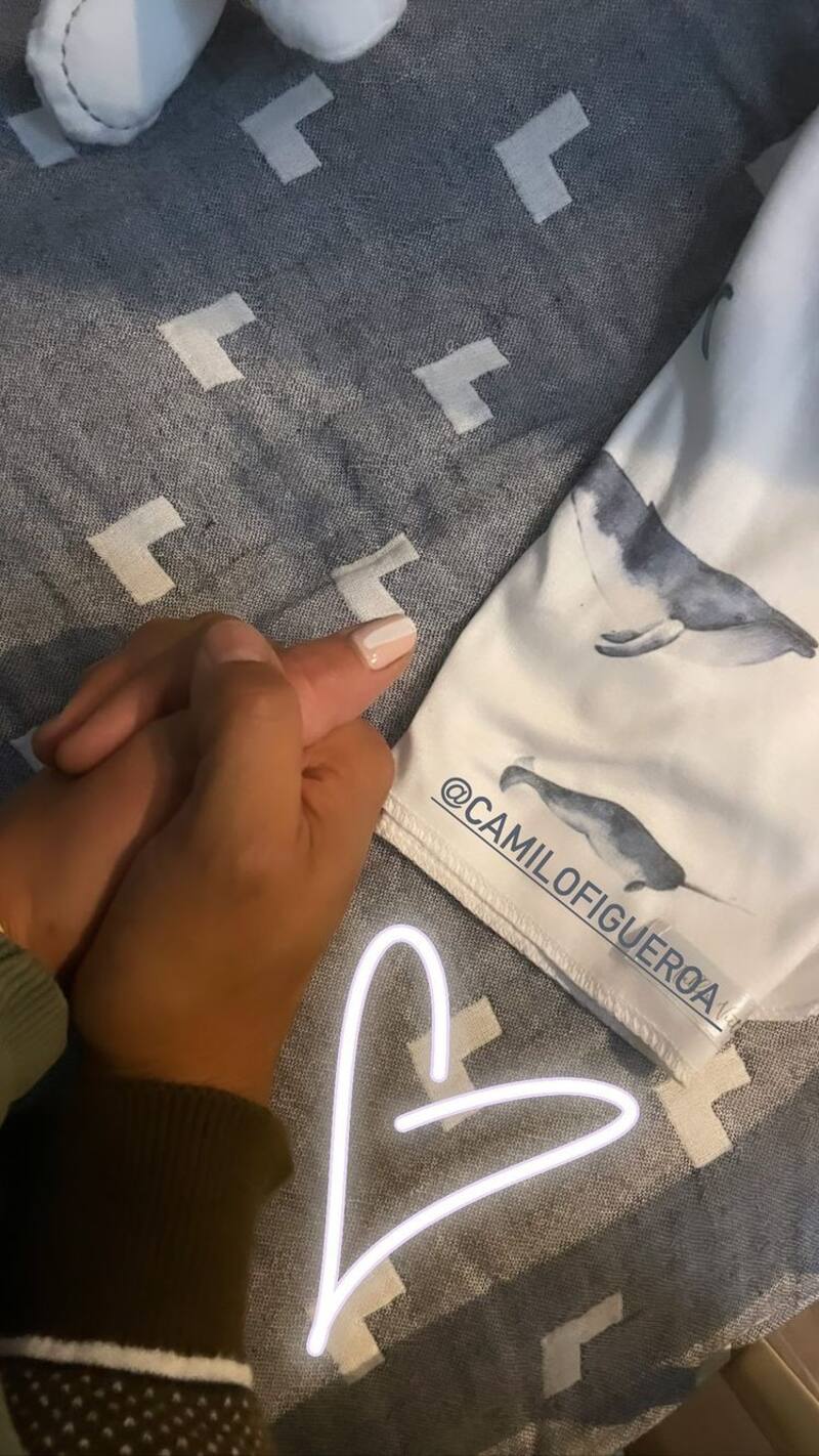 Al mismo tiempo, la actriz compartió otra foto de ambos con las manos entrelazadas en la espera de su pequeño Galo.