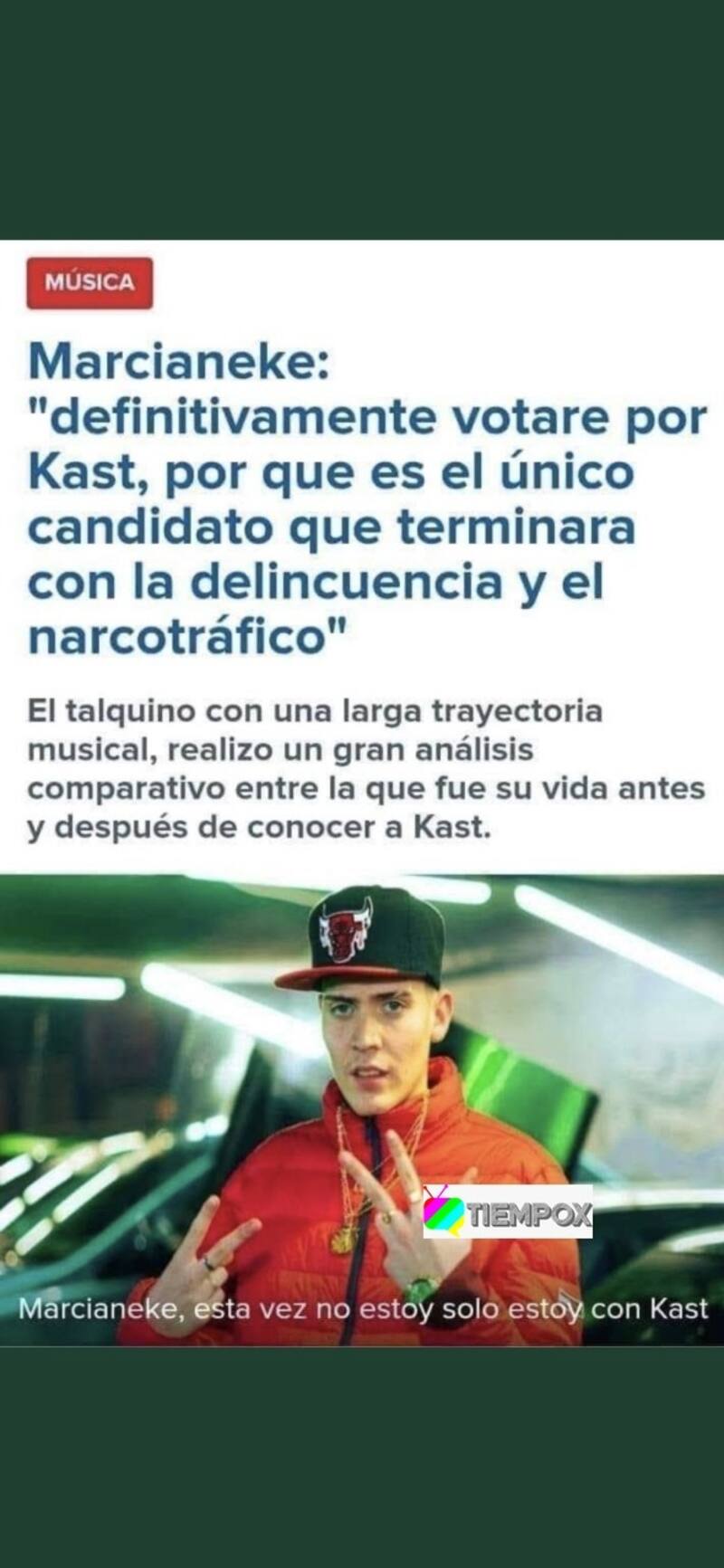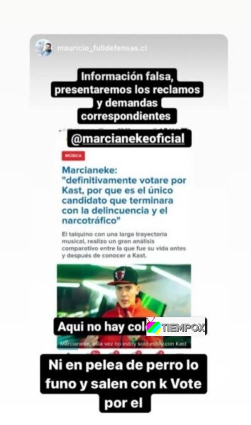 "Definitivamente votaré por Kast, porque es el único candidato que terminará con la delincuencia y el narcotráfico", se lee en el post que emula a un sitio web y que circuló principalmente en Twitter y algunos sitios de memes en Instagram.