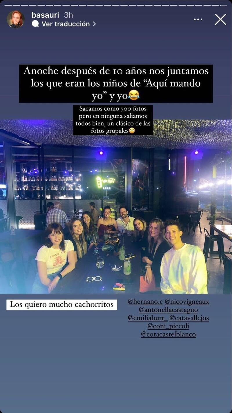 "Anoche, después de 10 años nos juntamos los que eran los niños de 'Aquí Mando yo' y yo. Sacamos como 700 fotos, pero en ninguna salíamos todos bien. Un clásico e las fotos grupales", agregó la actriz junto a una postal, agregando: "los quiero mucho, cachorritos".