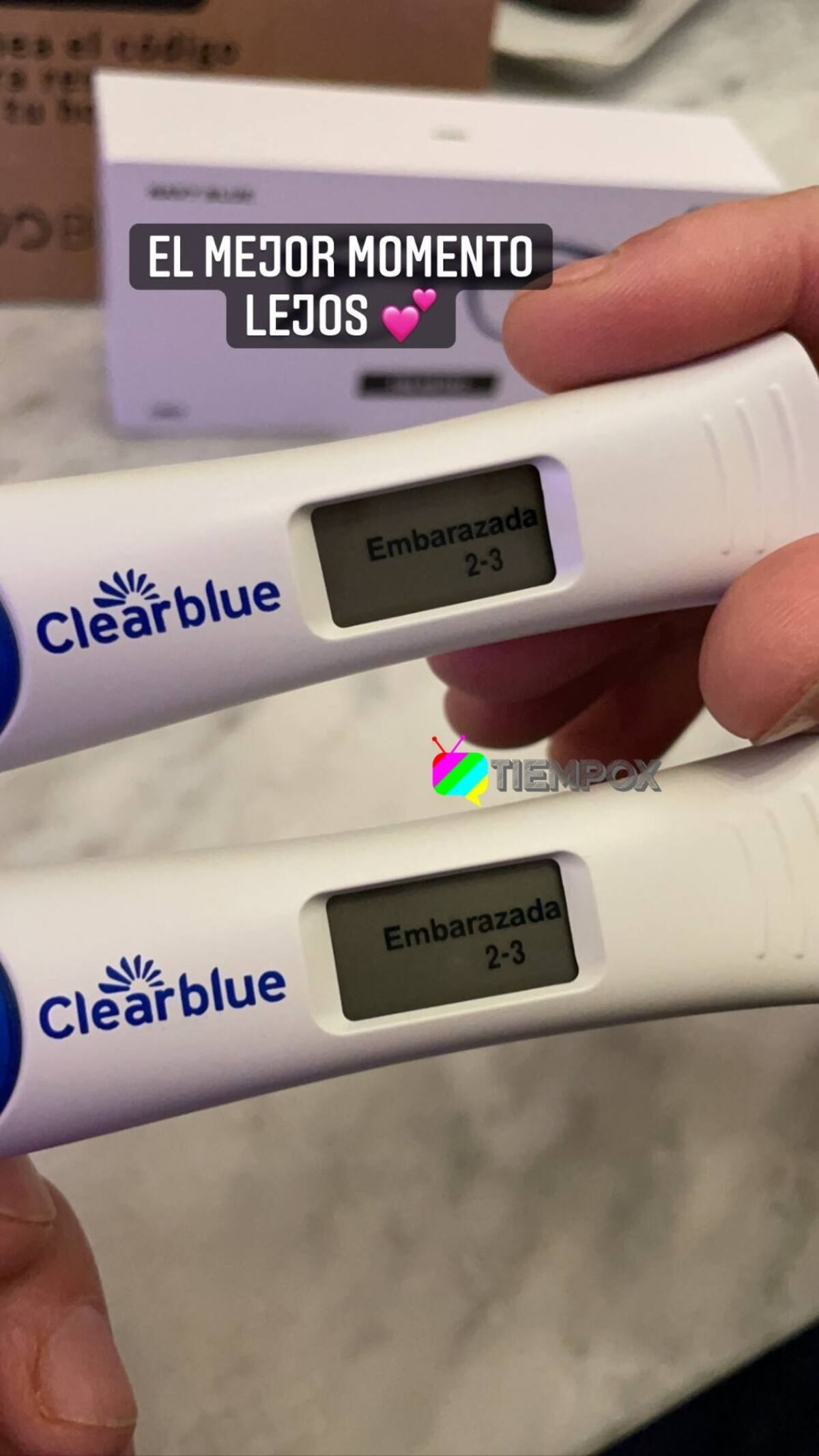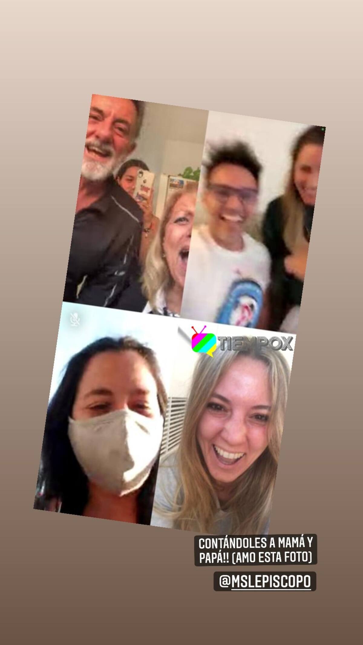 "El mejor momento lejos", dijo al mostrar la prueba que confirmaba su embarazo. Luego, una postal donde se ve que les cuenta a sus hermanos por video llamada y otra con sus padres en la misma modalidad.