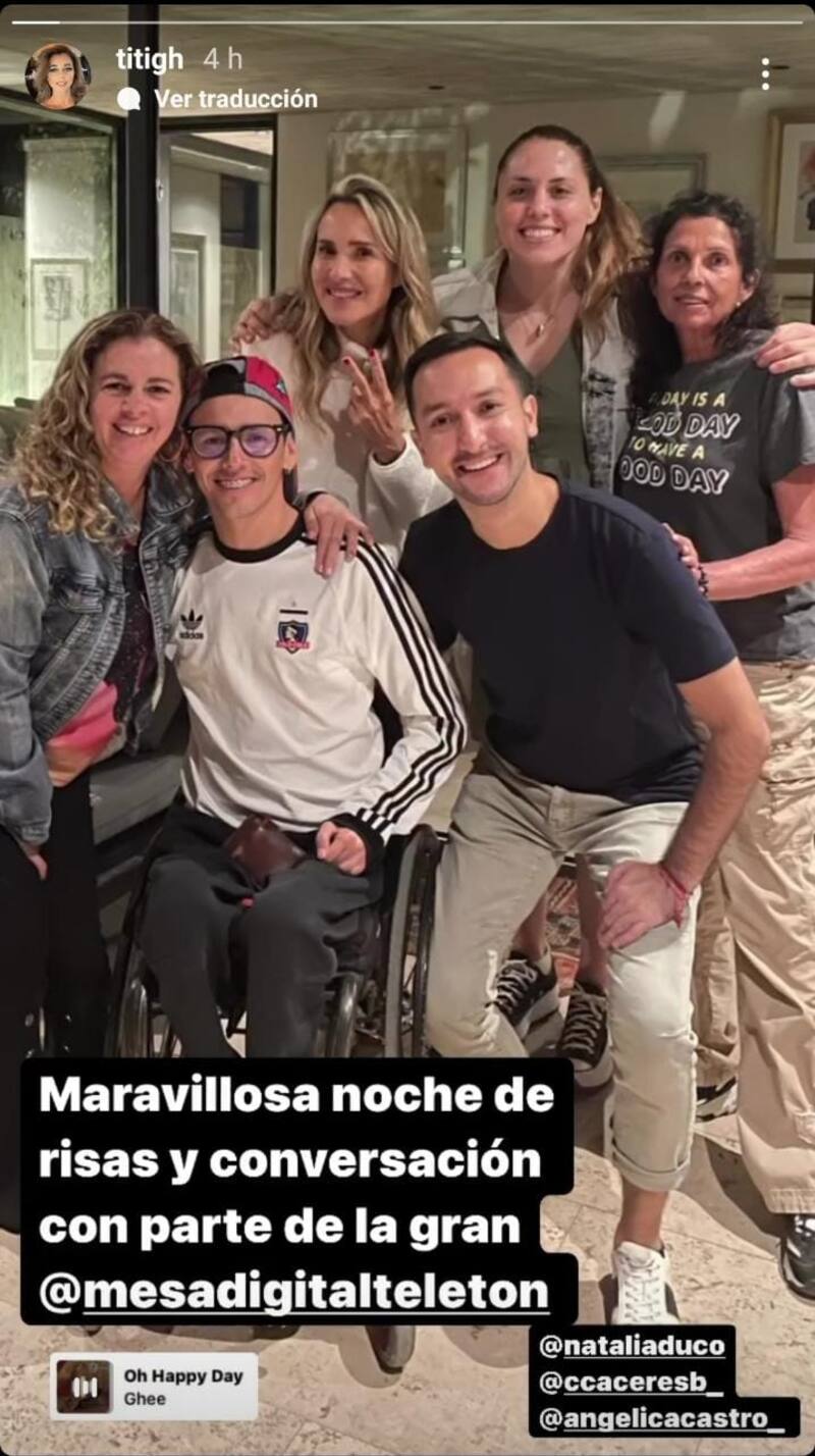 "Maravillosa noche de risas y conversación con parte de la gran mesa digital teletón", se escribió en la publicación que contaba con la presencia de la esposa de Cristián de la Fuente, Titi García-Huidobro, Natalia Duco, Claudio Cáceres y el nadador paralímpico Alberto Abarza.