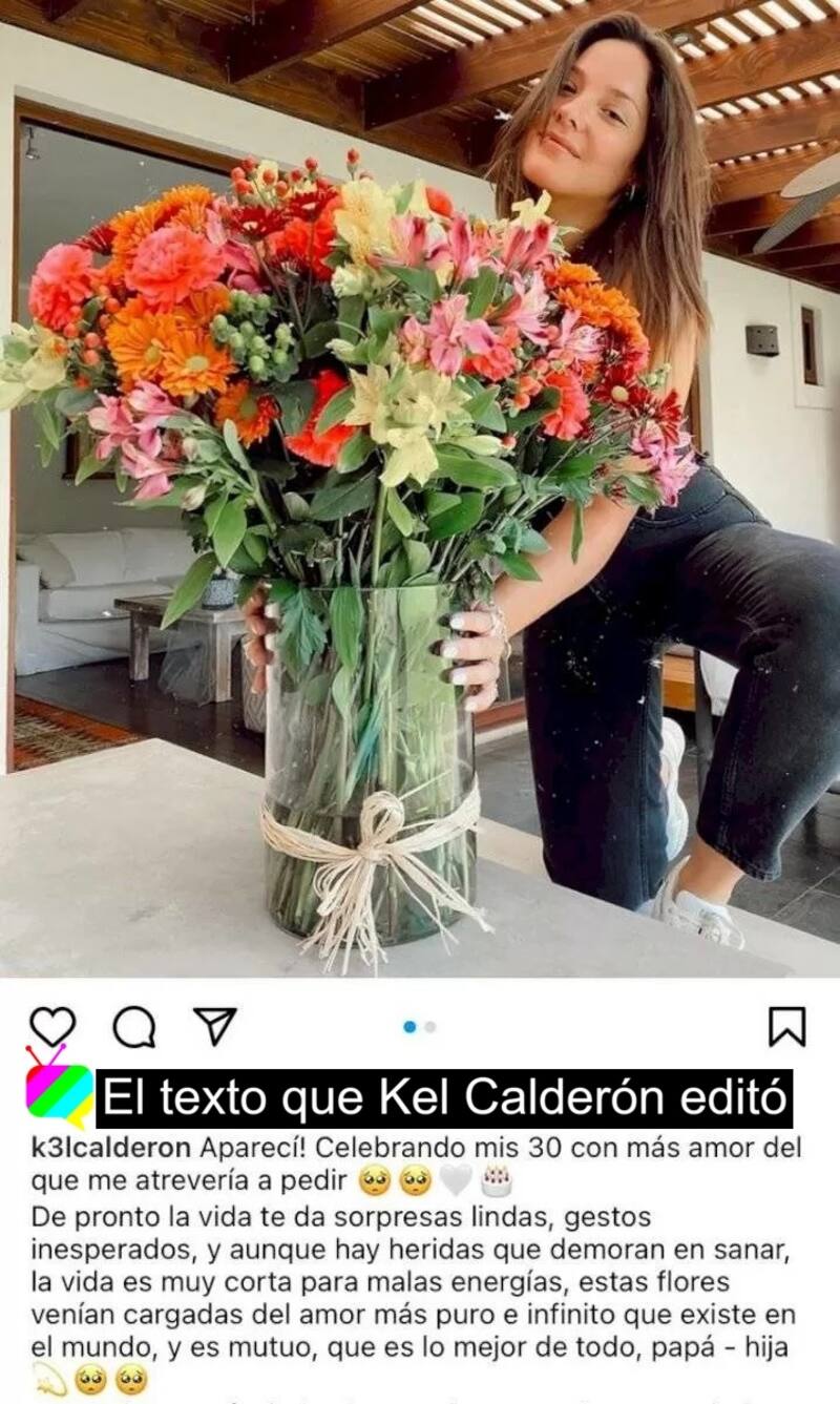 "De pronto la vida te da sorpresas lindas, gestos inesperados, y aunque hay heridas que demoran en sanar, la vida es muy corta para malas energías, estas flores venían cargadas del amor más puro e infinito que existe en el mundo, y es mutuo, que es lo mejor de todo, papá – hija", agregó Kel Calderón.