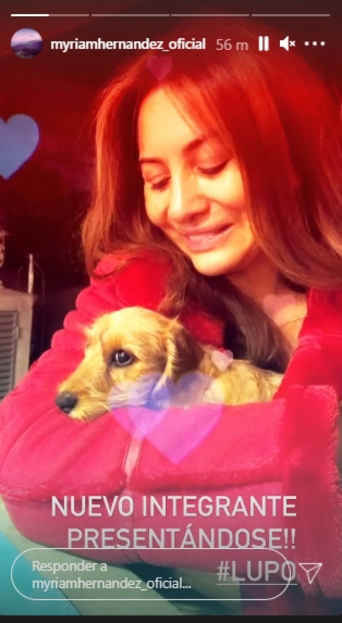 Myriam Hernández sorprendió este viernes a sus seguidores al presentar al nuevo integrante de su familia. A través de Instagram, la cantante mostró a Lupo, un perrito que posó en sus brazos y que se le vio muy cómodo.