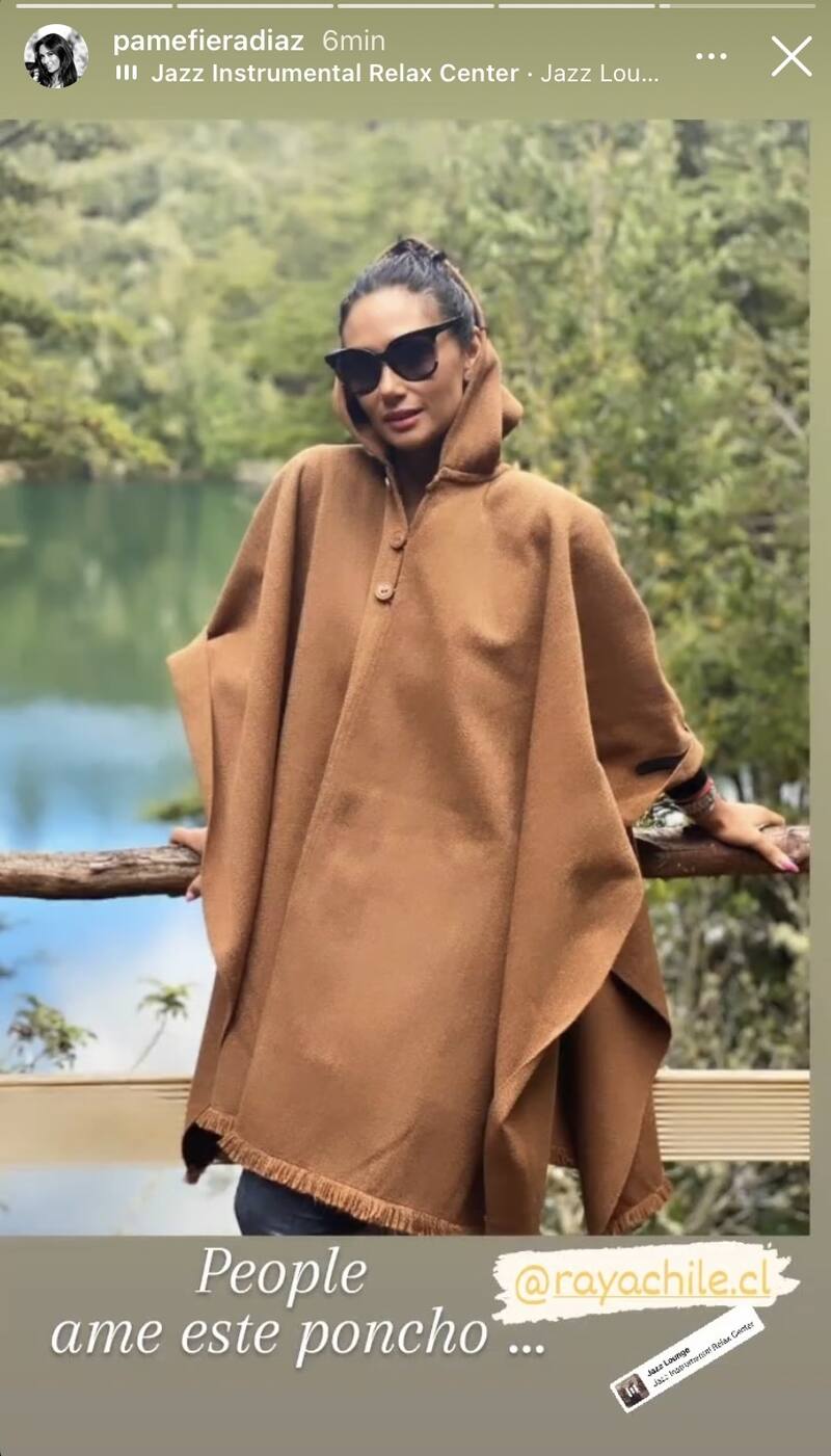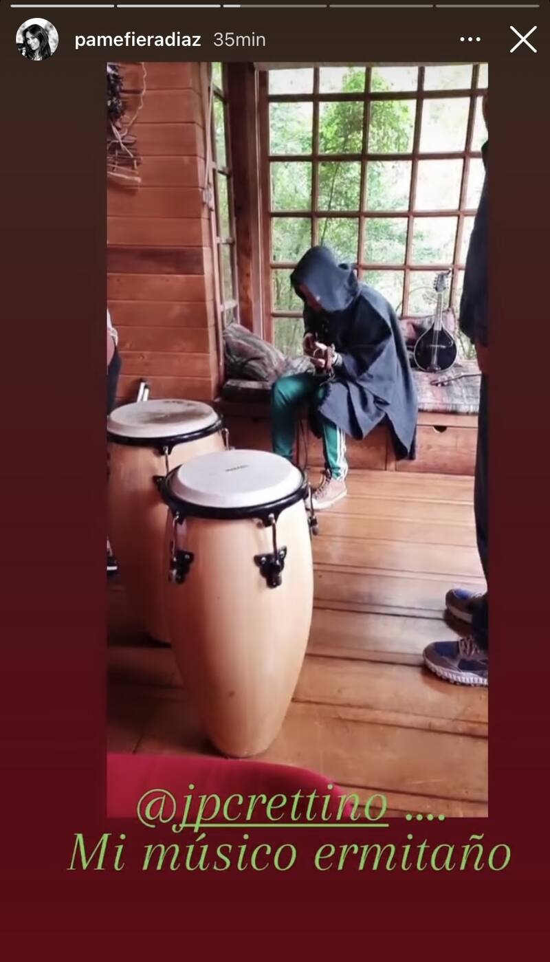 Luego, se puede ver el paisaje del lugar donde se encuentran, donde además "La fiera" escribió: "Amo el sur". En la siguiente historia, se ve a Jean Philippe tocando la guitarra, a lo que Pamela lo etiquetó y además añadió: "Mi músico ermitaño". Ya en las siguientes publicaciones se le puede ver posando con un poncho café, "people amé este poncho", mencionó.