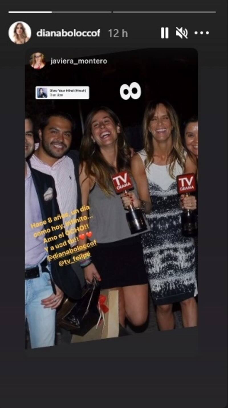 La foto pertenece a Javiera Montero, quien en ese entonces era parte del equipo, cuya publicación que compartió Diana Bolocco tenía el siguiente: "Hace 8 años, un día como hoy, infinito. Amor el OCHO y a usted también". La historia tenía etiquetando al rostro de Mega y a Felipe Morales, director de programas de Canal 13.