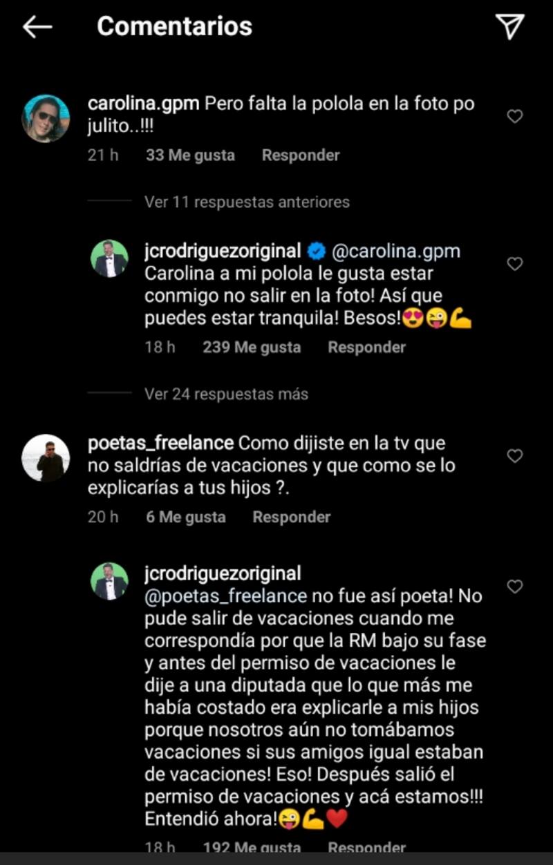 Por eso, en Instagram le reclamaron al conductor de “Contigo en la mañana” que en sus postales nunca se ve ella. “¡Pero falta la polola en la foto po’ julito!”, le dijo @carolina.gpm.
