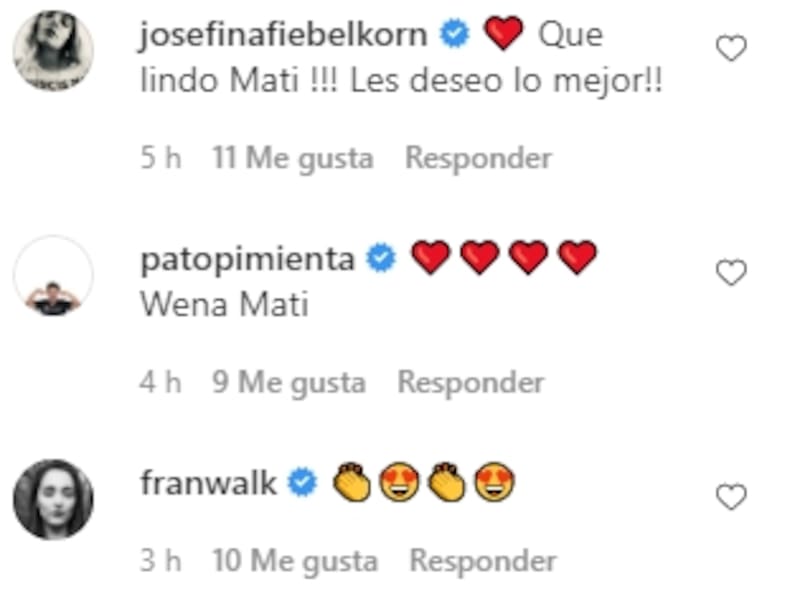 Revisa las reacciones a la publicación de Juanita Ringeling y Matías Assler