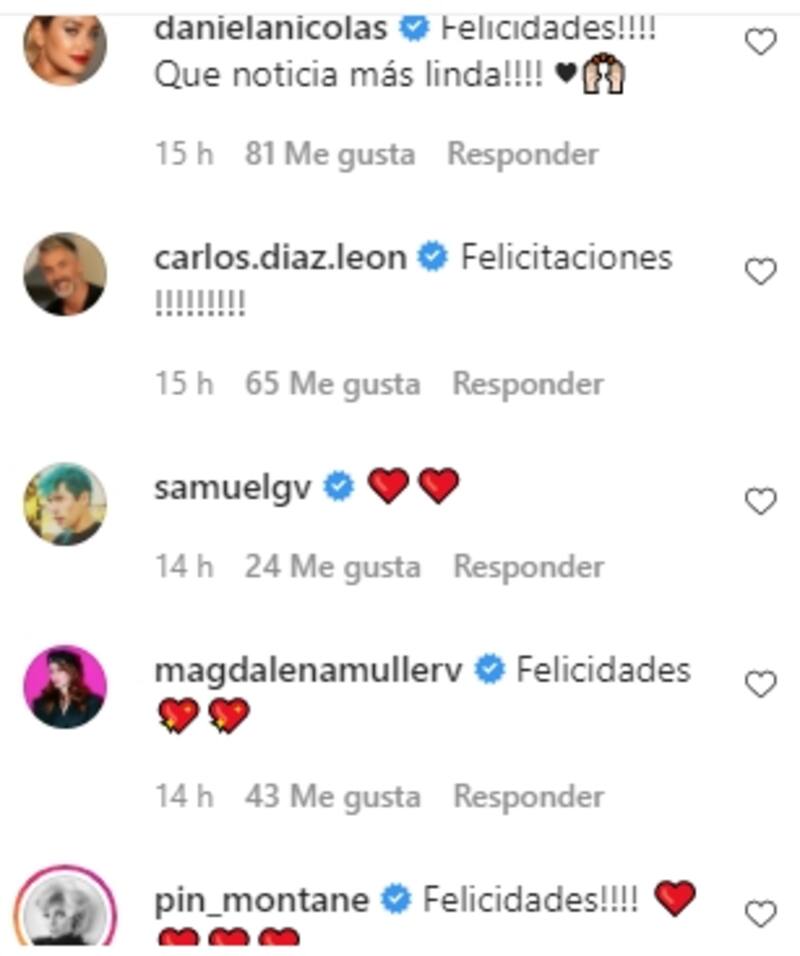 Ambos actores recibieron saludos de varios famosos, como Natalia Valdebenito que les dedicó bendiciones para "que la felicidad se les multiplique", y mensajes de felicitaciones de parte de gente del ambiente actoral como Carlos Díaz, Mayte Rodríguez, Magdalena Müller y Josefina Montané.