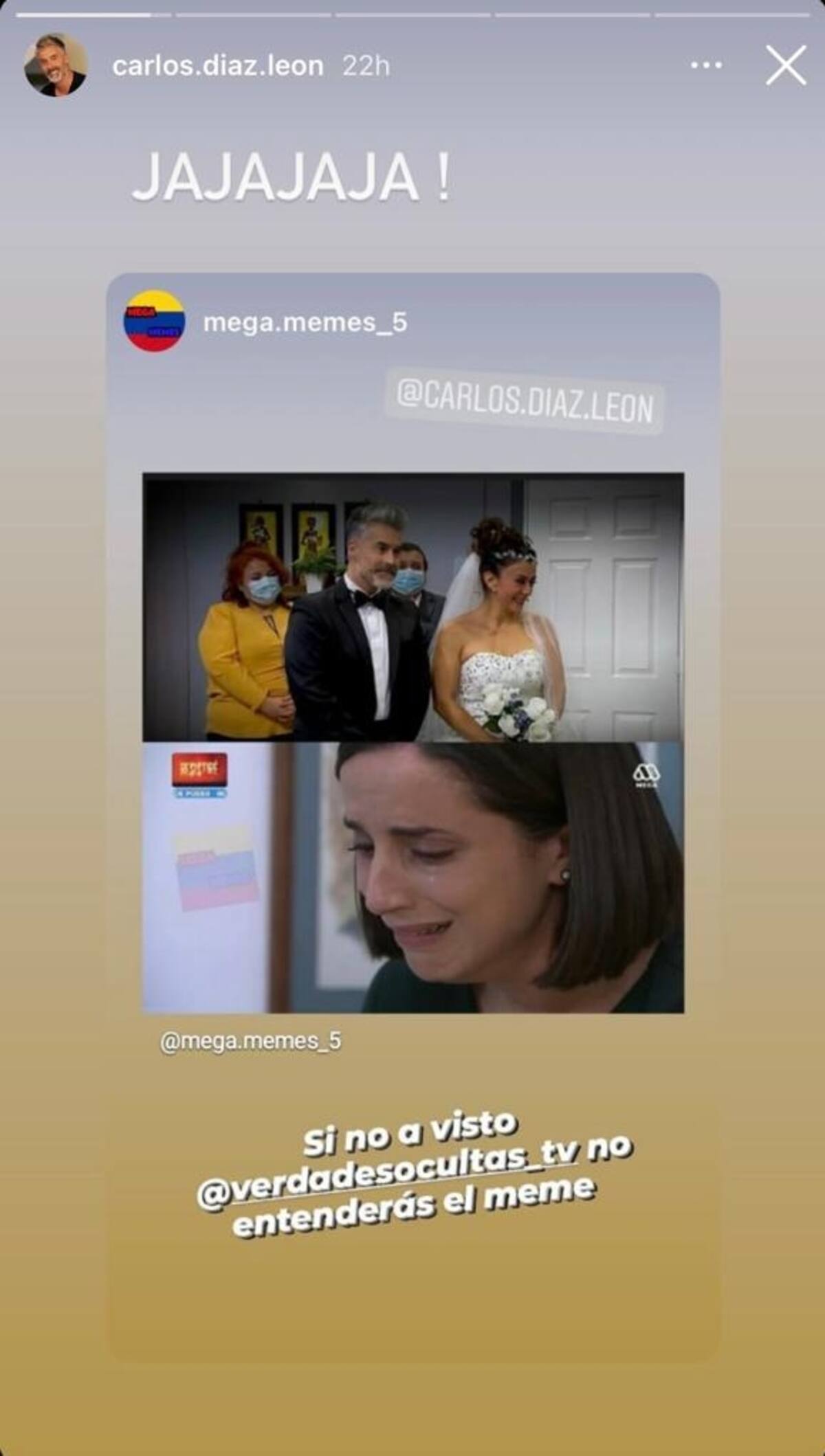 Es en este sentido que un creativo usuario de redes sociales creó un meme, donde ambos aparecen vestidos de novios, mientras Rocío, protagonista de la teleserie y viuda de Leonardo, llora al verlos. La divertida imagen hizo esbozar carcajadas a Carlos Díaz, quien no dudó en compartirla en sus historias de Instagram.