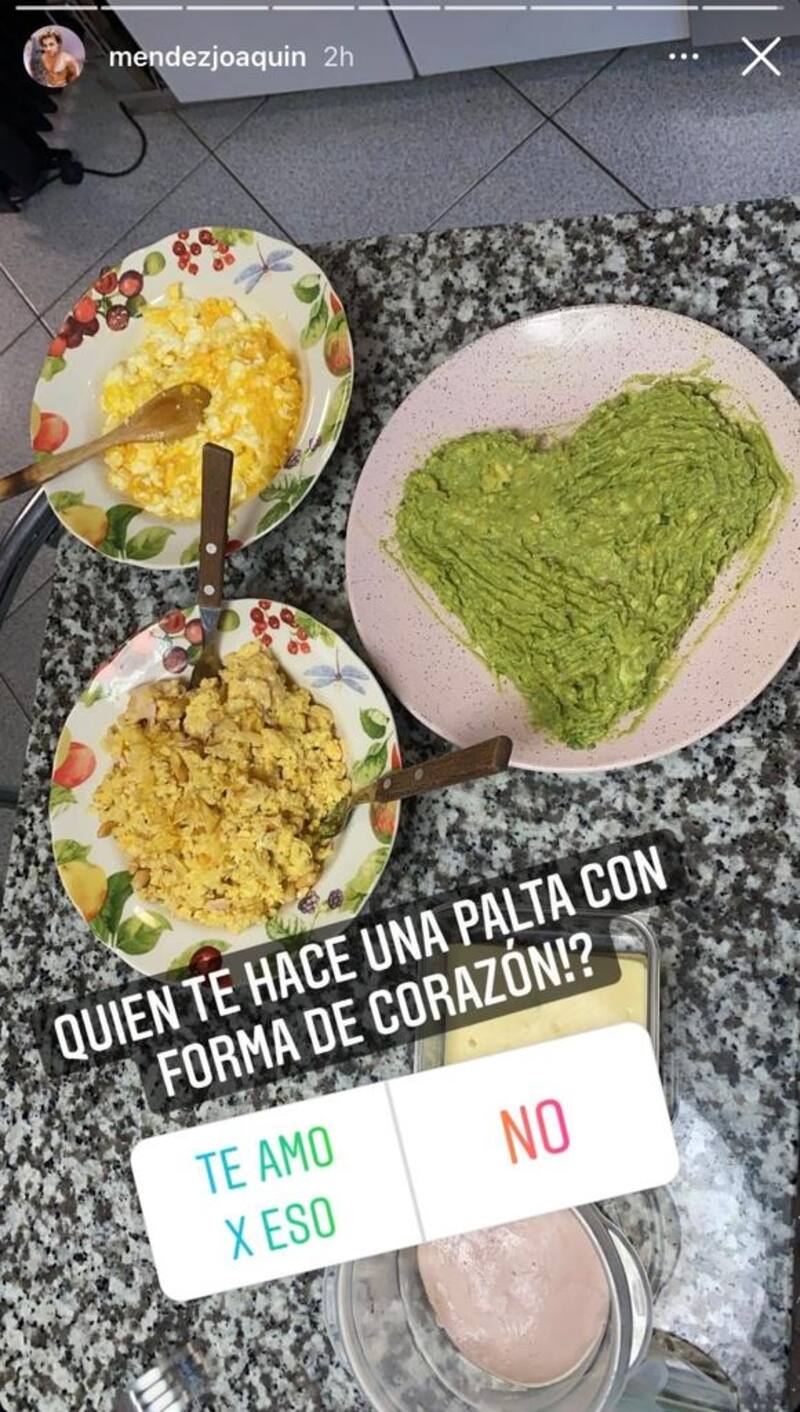 "¿Quién te hace una palta con corazón?", escribió Joaquín Méndez junto a la fotografía, iniciando una encuesta para que sus seguidores eligieran entre las opciones: "Te amo por eso" y "no".