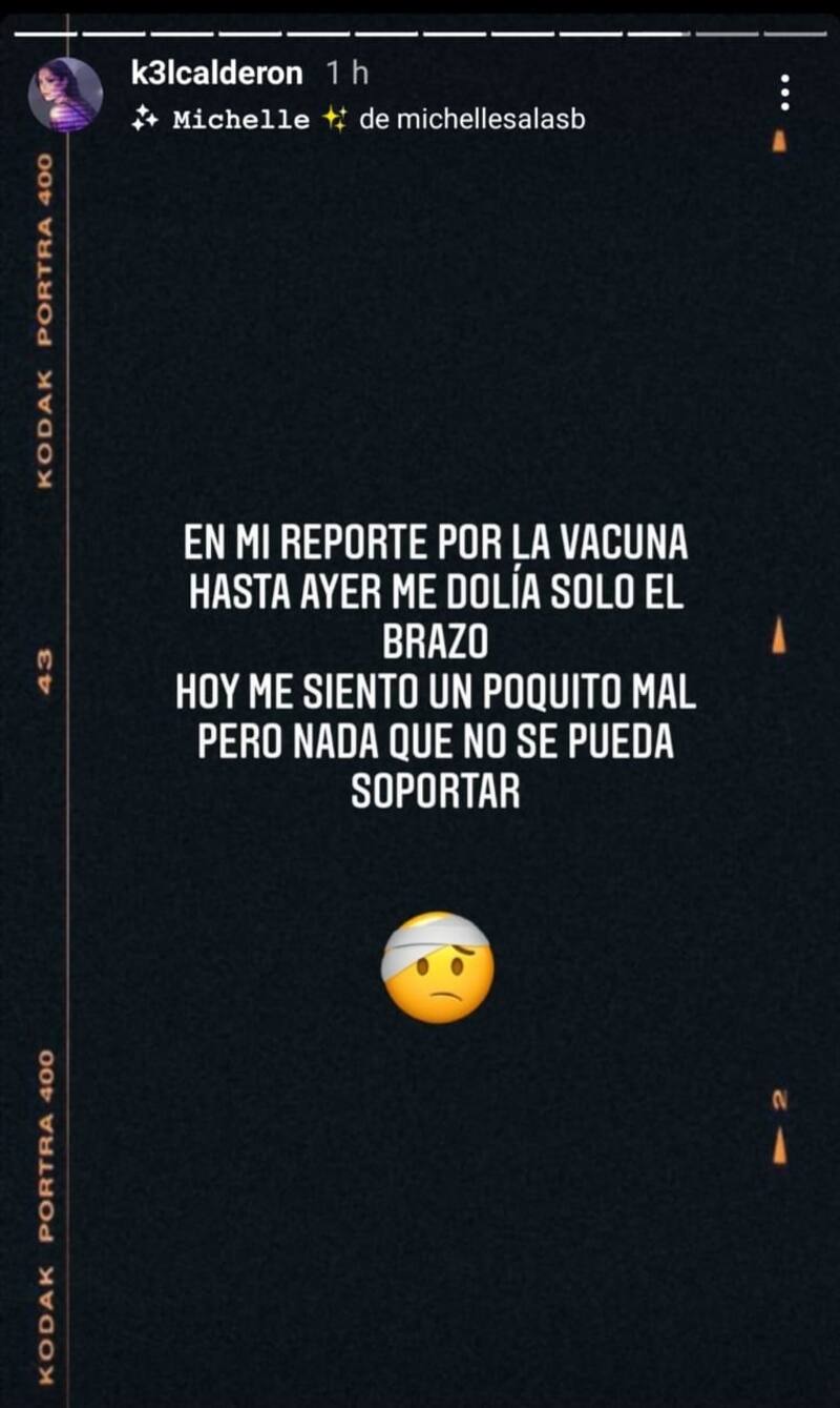 "En mi reporte por la vacuna hasta ayer me dolía solo el brazo. Hoy me siendo un poquito mal pero nada que no se pueda soportar", escribió Kel Calderón en su red social que suma 1,7 millones de seguidores.