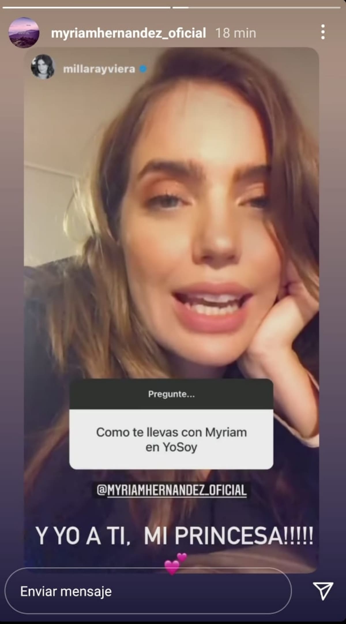 Millaray Viera se ha mostrado muy activa en las redes sociales, pidiendo que sus seguidores le hagan consultas sobre su vida personal para que se puedan conocer más. En ese sentido, una pregunta particular sobre Myriam Hernández hizo que la animadora de "Yo Soy" mostrara toda su cercanía con la cantante.