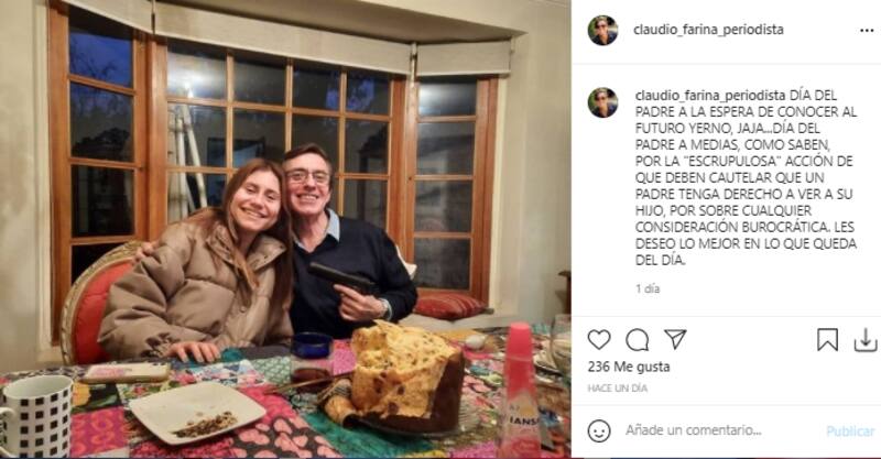 Claudio Fariña volvió a la palestra protagonizando una particular polémica, ya que se fotografió junto a su hija con un arma en la mano. A través de su cuenta de Instagram, el periodista celebró el día del padre con un particular mensaje, donde bromeaba con que estaba esperando a su yerno.